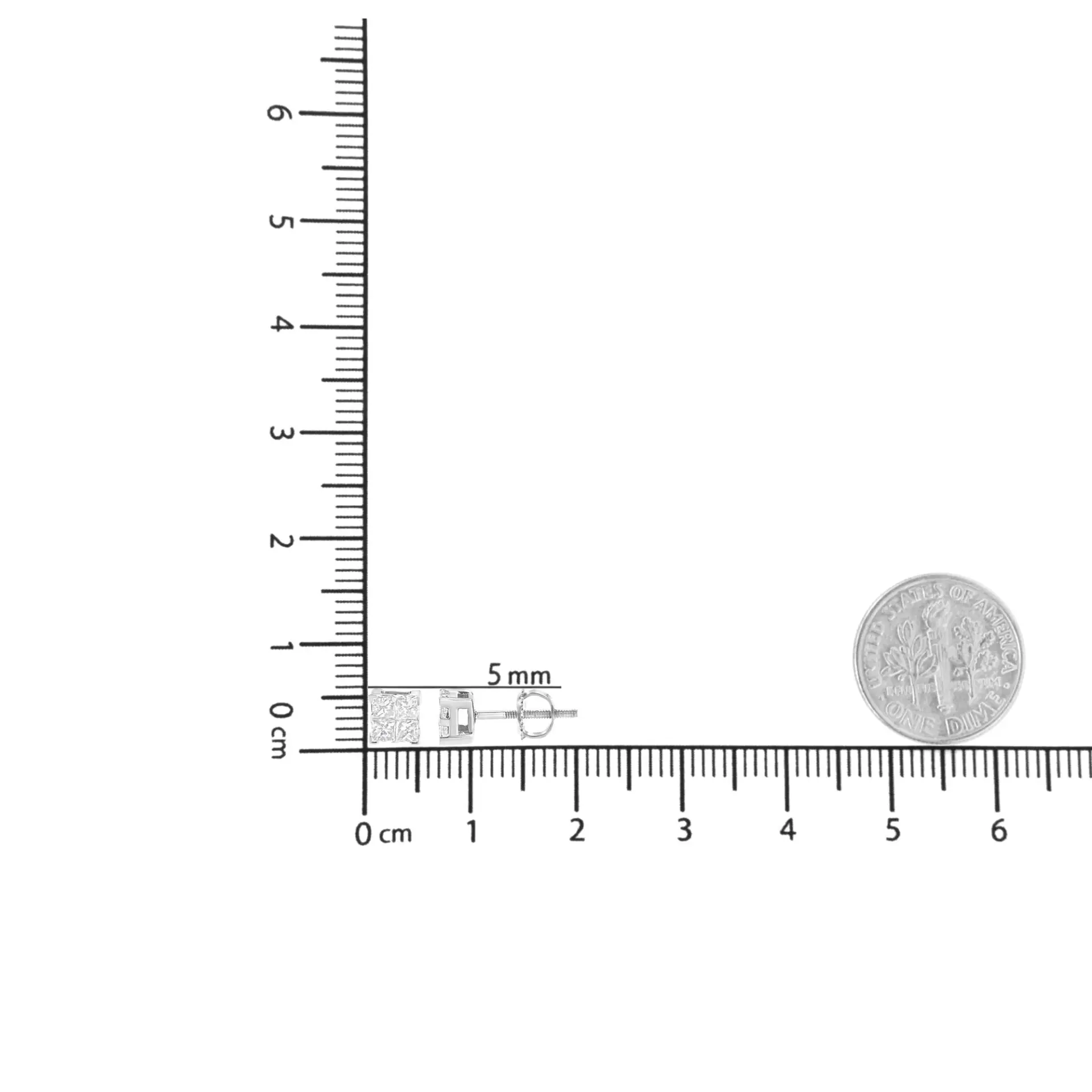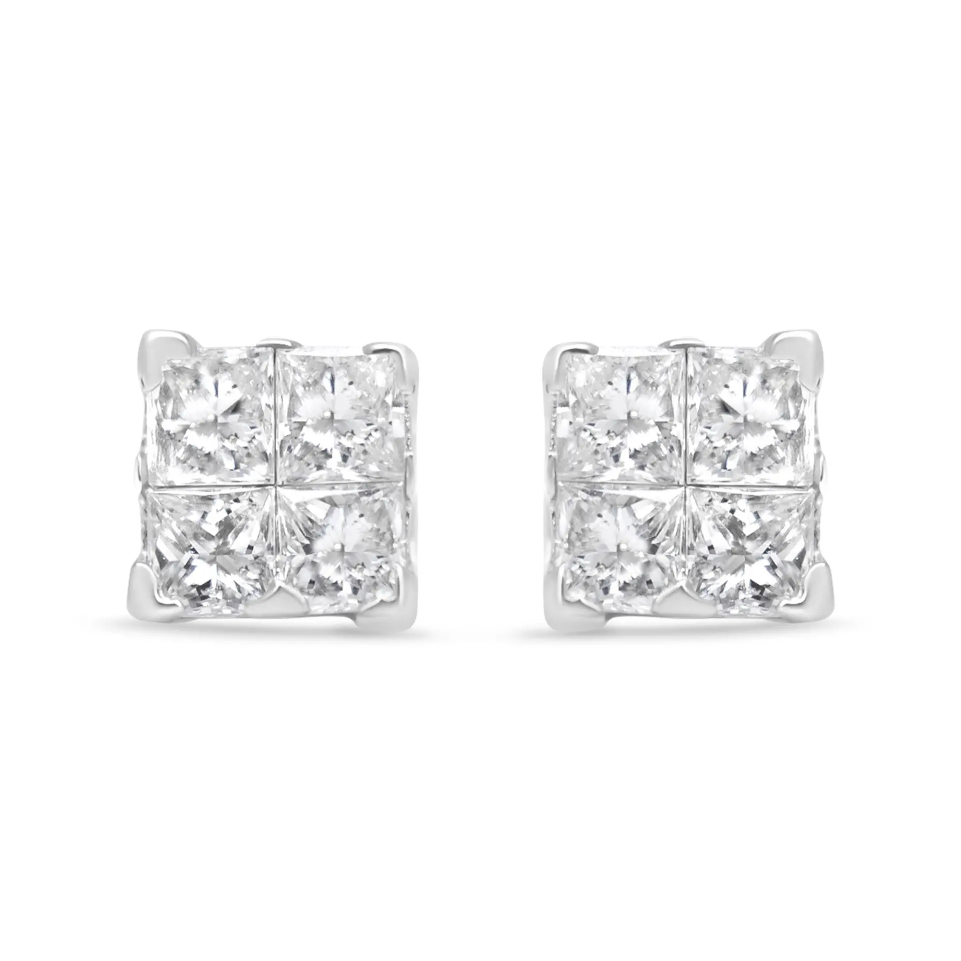 Celebrate a special moment with these exquisite quad diamond composite stud earrings made of genuine .925 sterling silver. This pair of four-diamond composite stud earrings features a cluster of four princess cut diamonds on each stud for a total of 8 natural, sparkling diamonds. These diamonds are invisibly set, creating the appearance of a larger single diamond. These studs are crafted with threaded posts and screwback closures for a secure fit. This authentic design is crafted of real 92.5% sterling silver that has been electro-coated with genuine rhodium (a platinum-family metal), ensuring it will keep a tarnish-free shine for years to come. These beautiful earrings make a great gift for any special occasion. Whether worn for daytime glamour or evening sparkle, these earrings are gorgeously versatile. Coordinate them with your favorite diamond necklace or other diamond jewelry to create a complete and elegant ensemble.