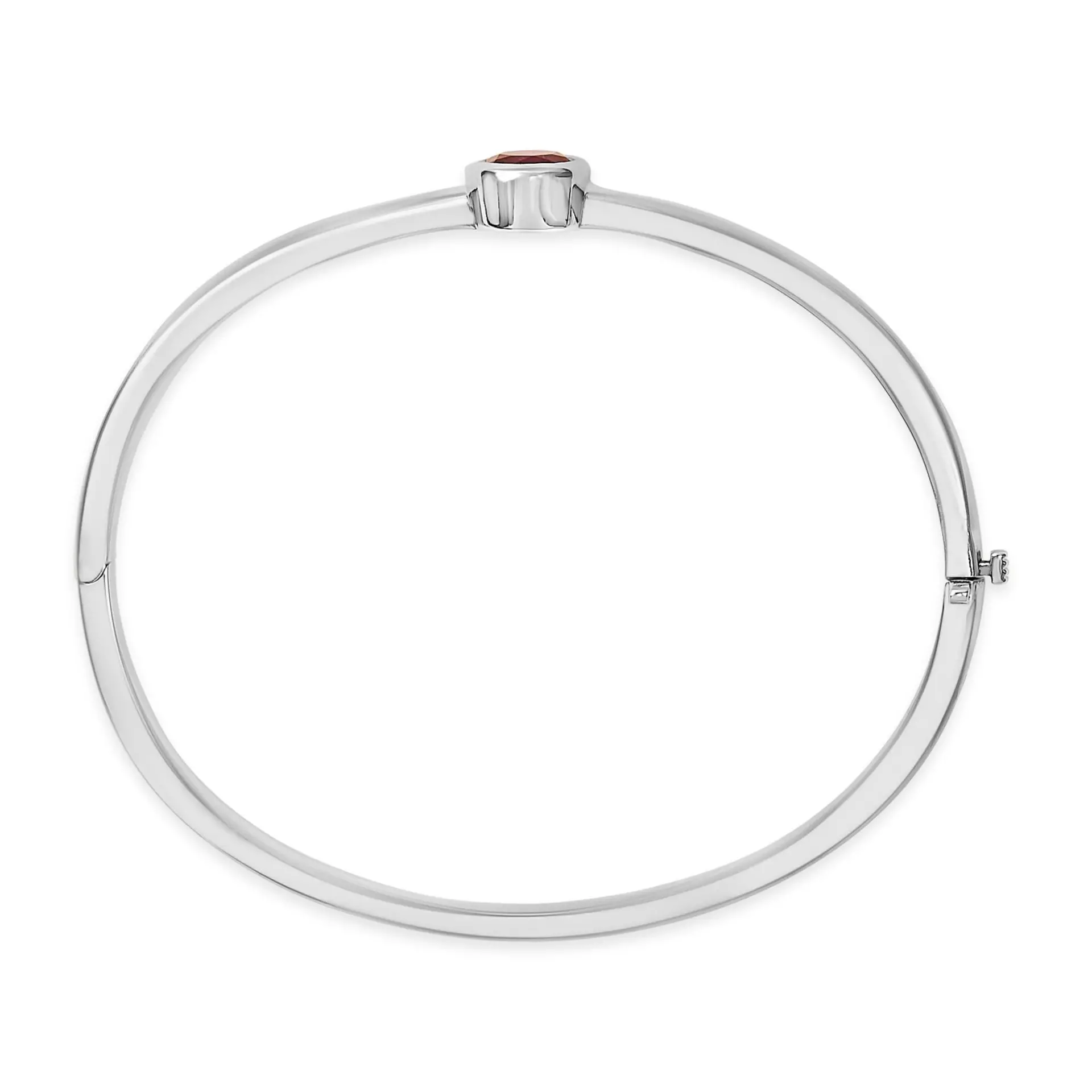 Envelop your wrist in the mesmerizing allure of this rhodium-plated .925 sterling silver bangle, designed expertly to grace a 7-inch wrist with timeless elegance. At its heart lies a 7x7mm lab-created red ruby, its vibrant hue enhanced through careful color treatment to capture and reflect light with every movement. Set in a secure bezel that promises to keep this precious gem safe, it’s the centerpiece that draws eyes and invites compliments. The bangle clasps with a sturdy box mechanism, reinforced with a safety latch to ensure that this exquisite piece remains fixed on your wrist as a constant reminder of sophistication. Ideal for those who cherish the blend of modern craftsmanship and classic luxury, this bracelet transforms any ensemble into a statement of unrivaled style.