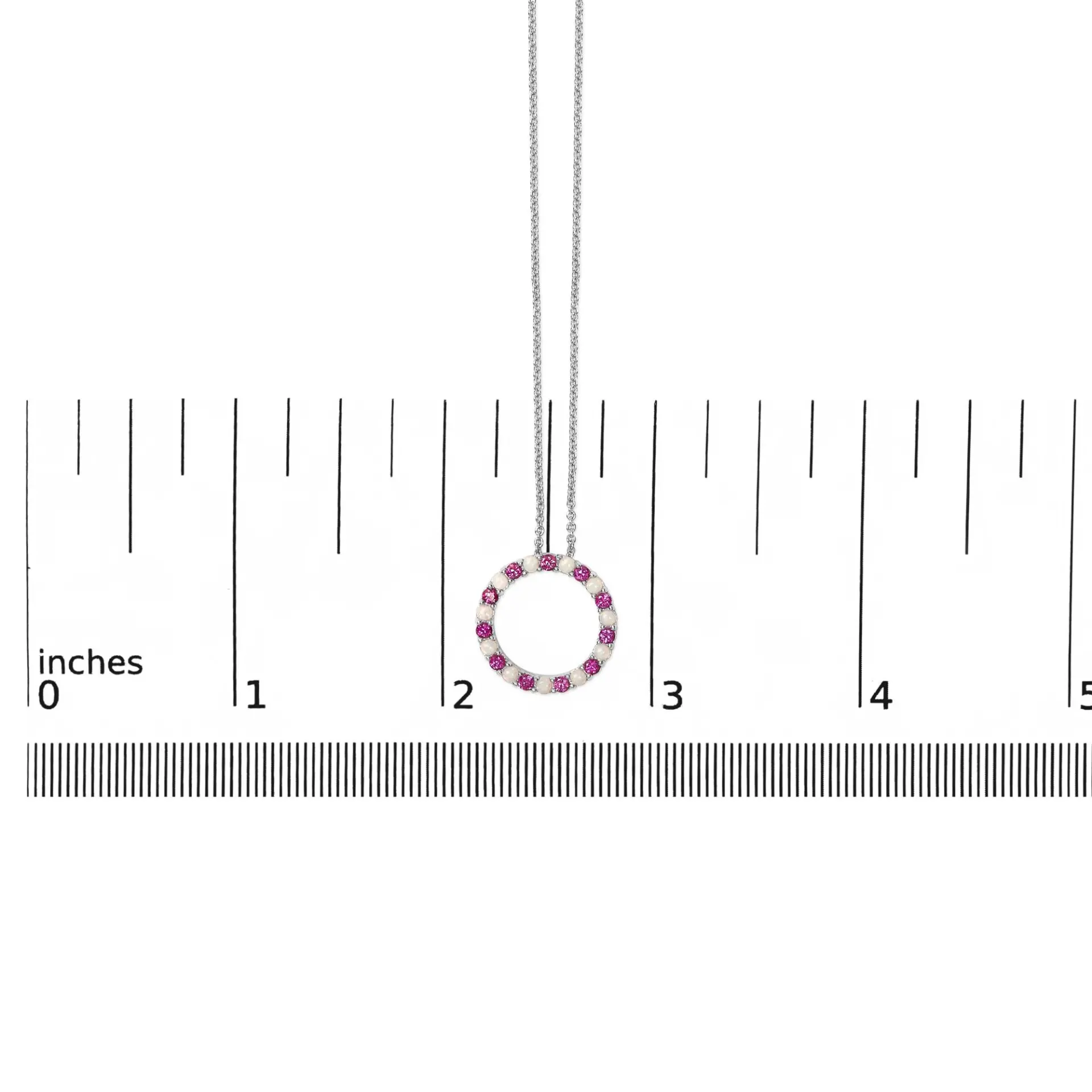 Be the first to review “.925 Sterling Silver Alternating Created Red Ruby and Opal Circle Pendant Necklace”