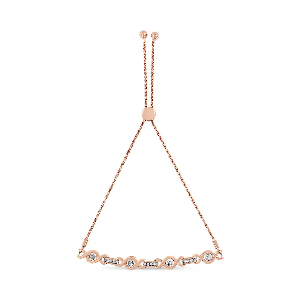 .925 Sterling Silver Channel Set Diamond Accent Twist 4-10 Adjustable Bolo Bracelet (I-J Color, I3 Clarity)
