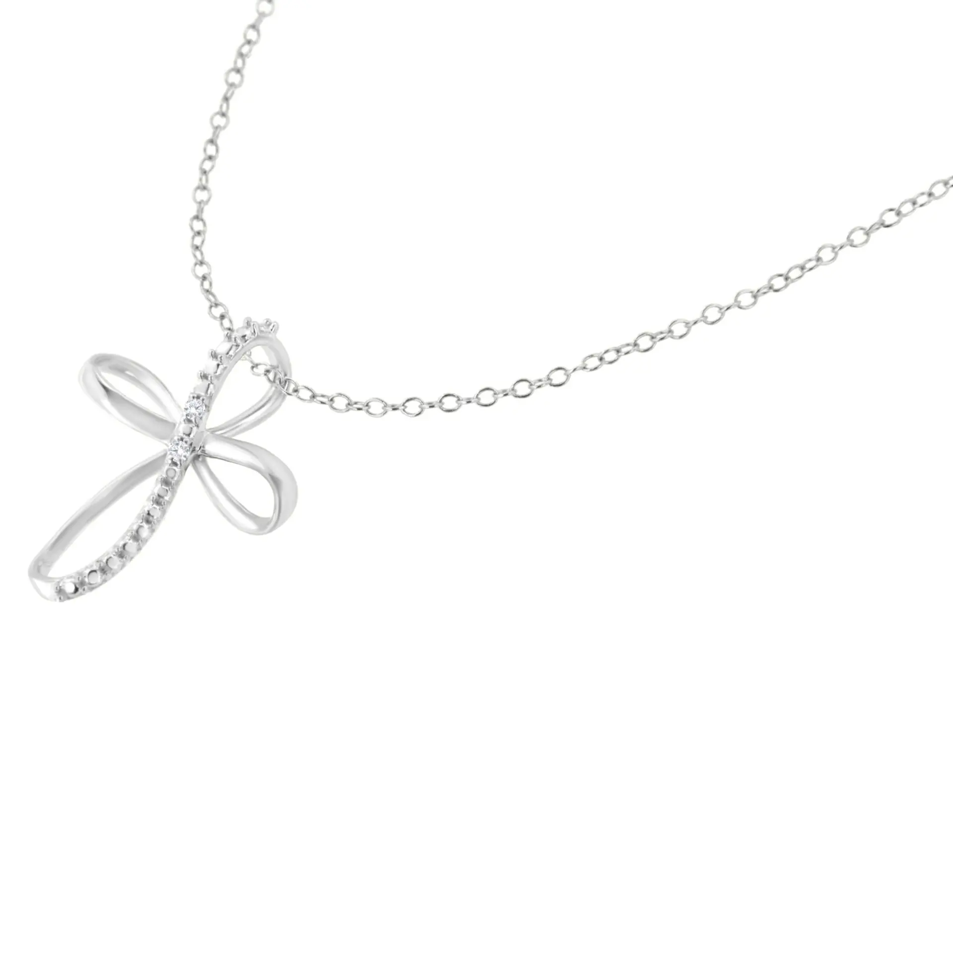 Show off your faith with this stunning 10K yellow gold coated .925 sterling silver ribbon cross pendant. The cross shaped pendant crafted with warm weaves of 10k yellow gold flashed sterling and is accented with 2 natural, round, diamonds, .The pendant comes on a fine yellow plated sterling 18 cable chain with a spring ring clasp. This authentic design is crafted of real 92.5% sterling silver that has been electro-coated with genuine 10K yellow gold, ensuring it will keep a tarnish-free shine for years to come. Both pretty and personal, this cross pendant is beloved by all.