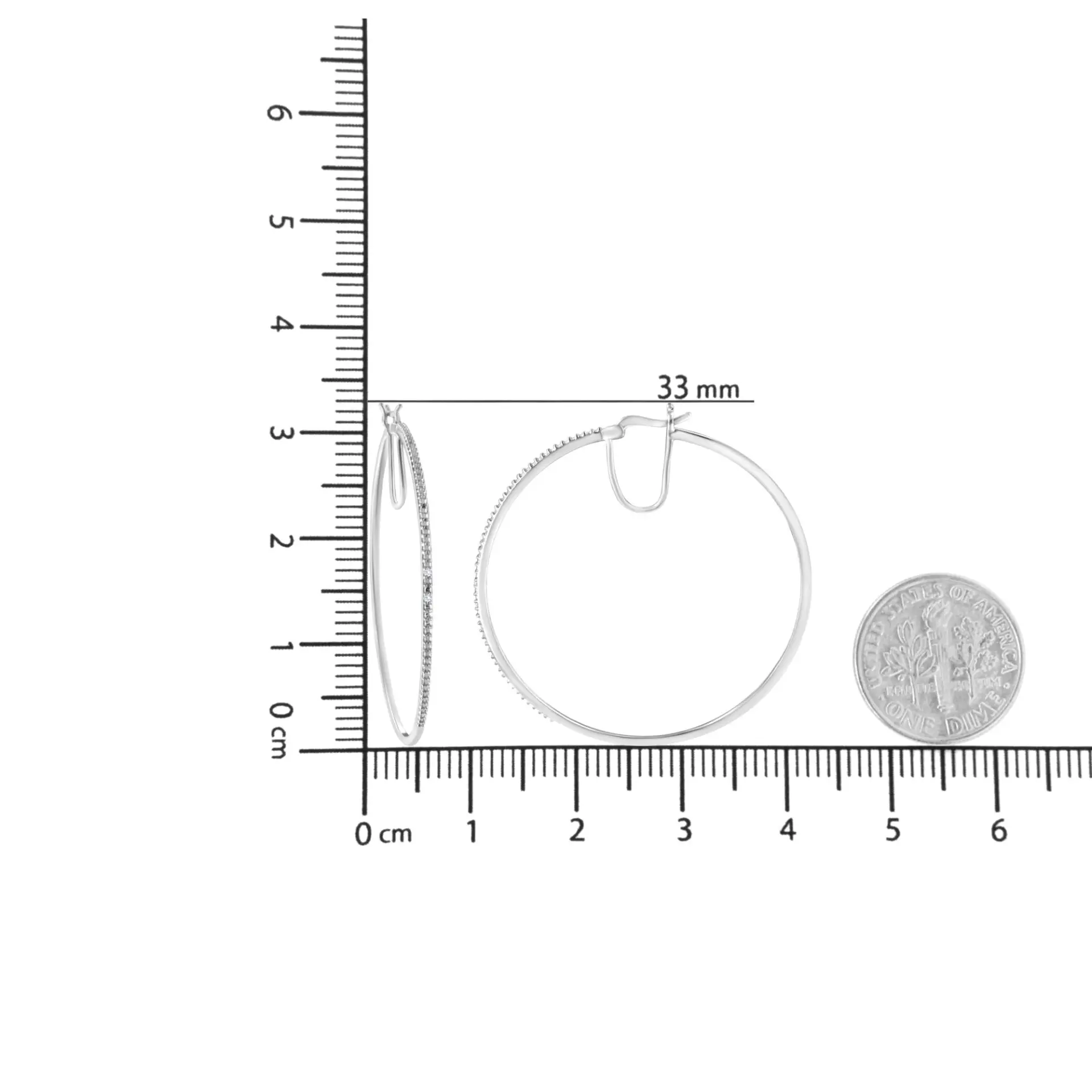 The fabulously sleek style of these sterling silver hoop earrings will complete any outfit and add the perfect amount of sparkle to your day. With a dazzling diamond accent comprised of 4 natural, sparkling diamonds, this diamond hoop design gives you the look of many high-end pave diamonds for a fraction of the price. The inside-out design sparkles from every angle.