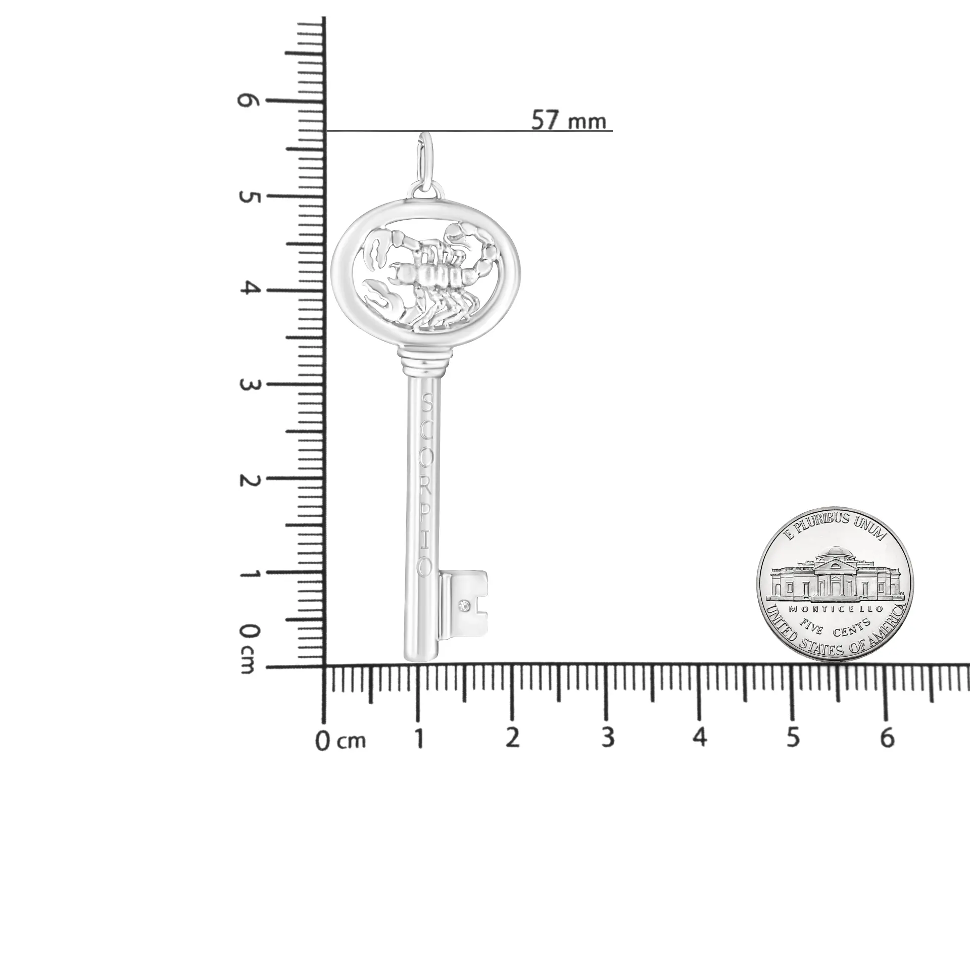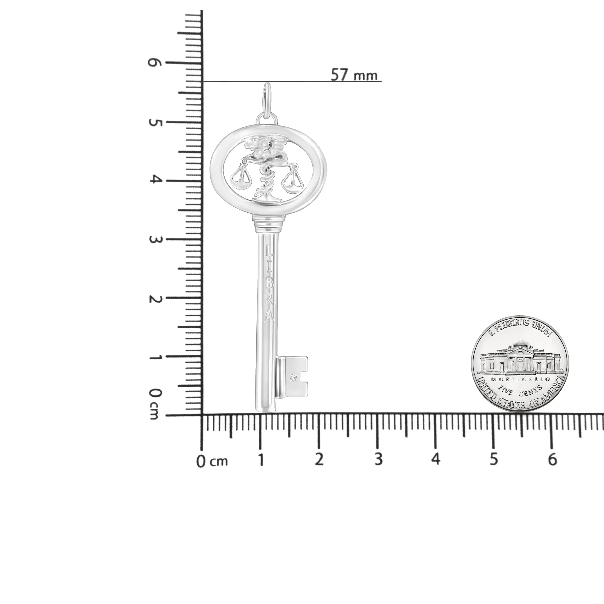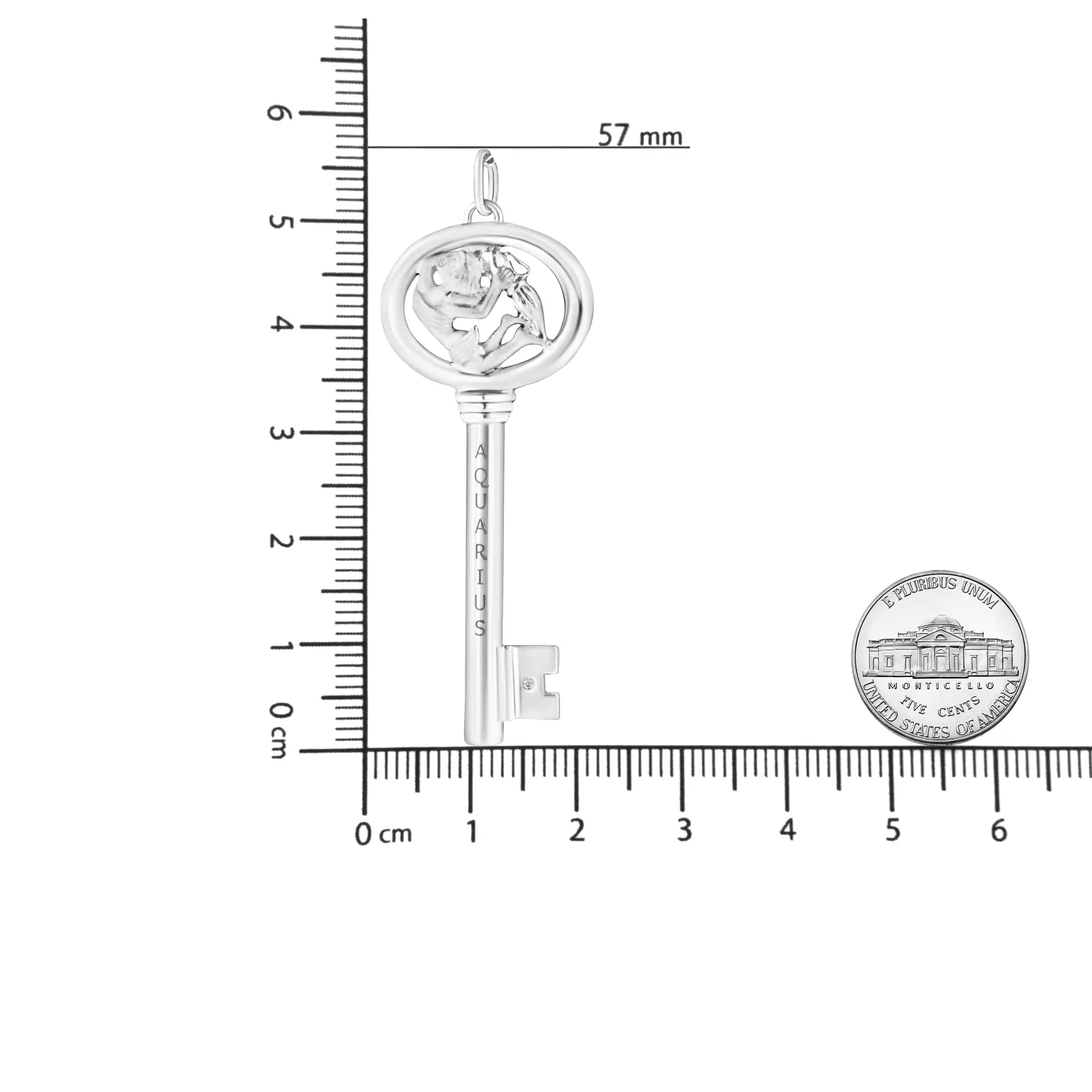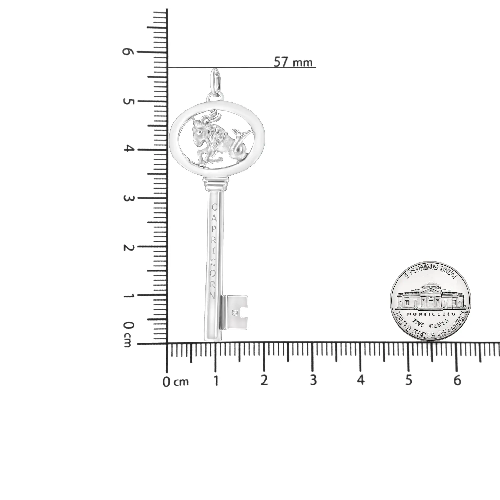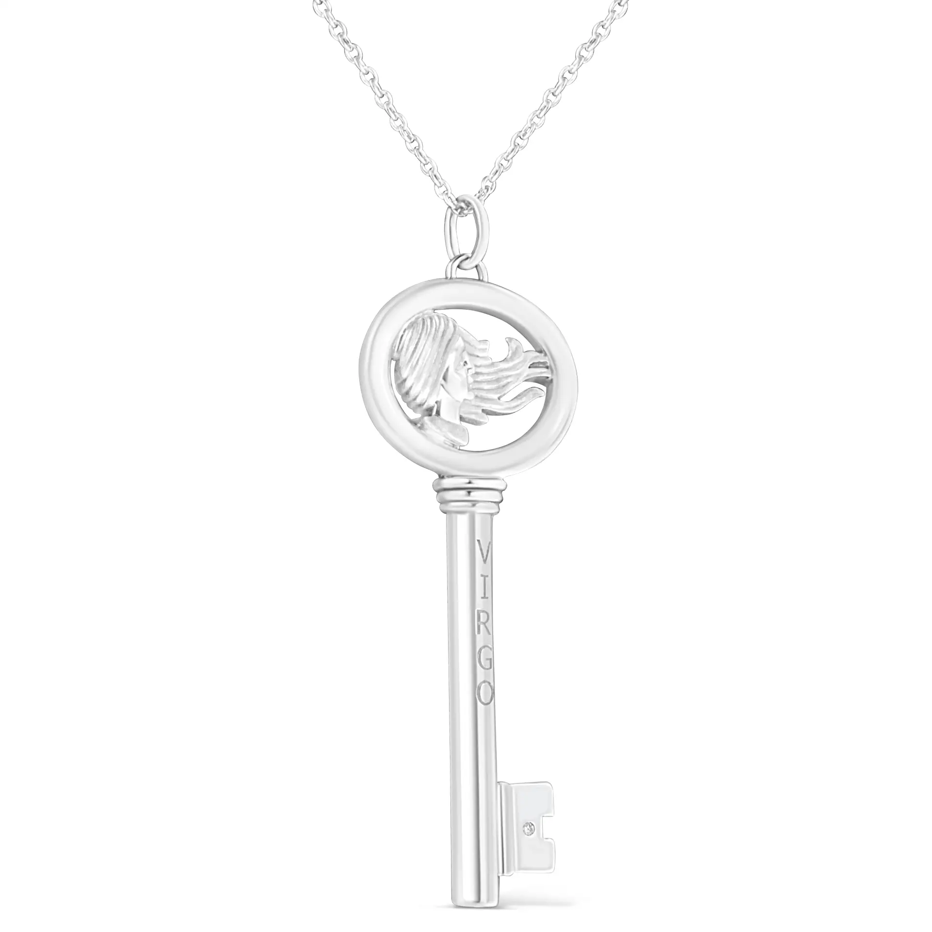 .925 Sterling Silver Diamond Accent Zodiac Key 18″ Pendant Necklace (K-L Color, I1-I2 Clarity)
