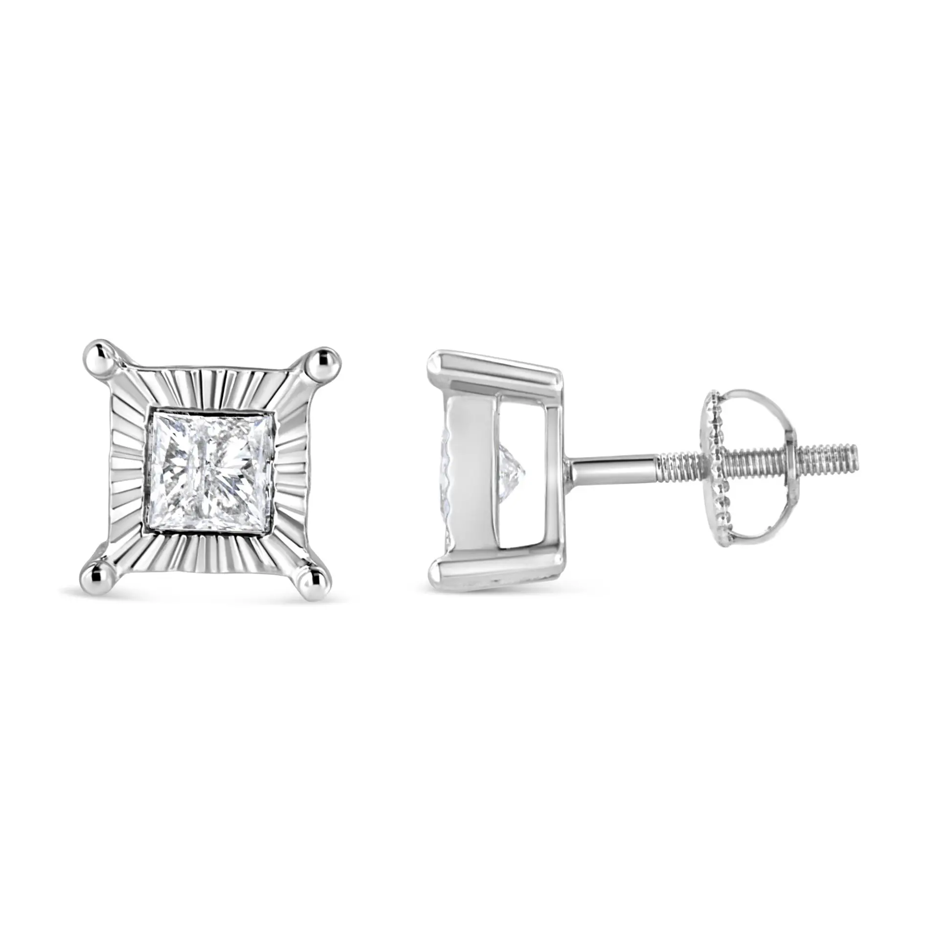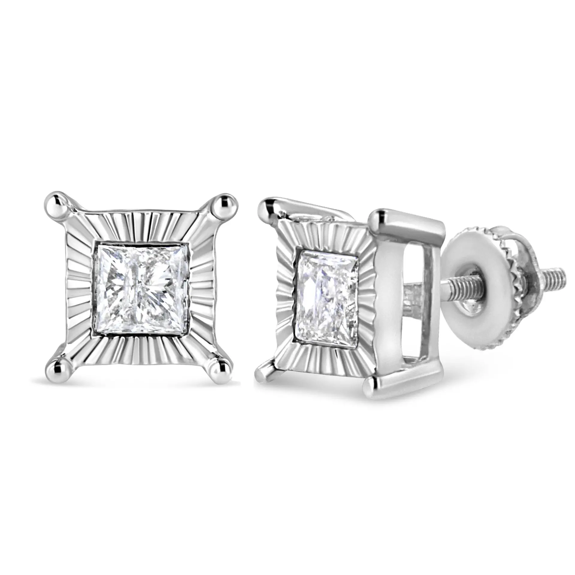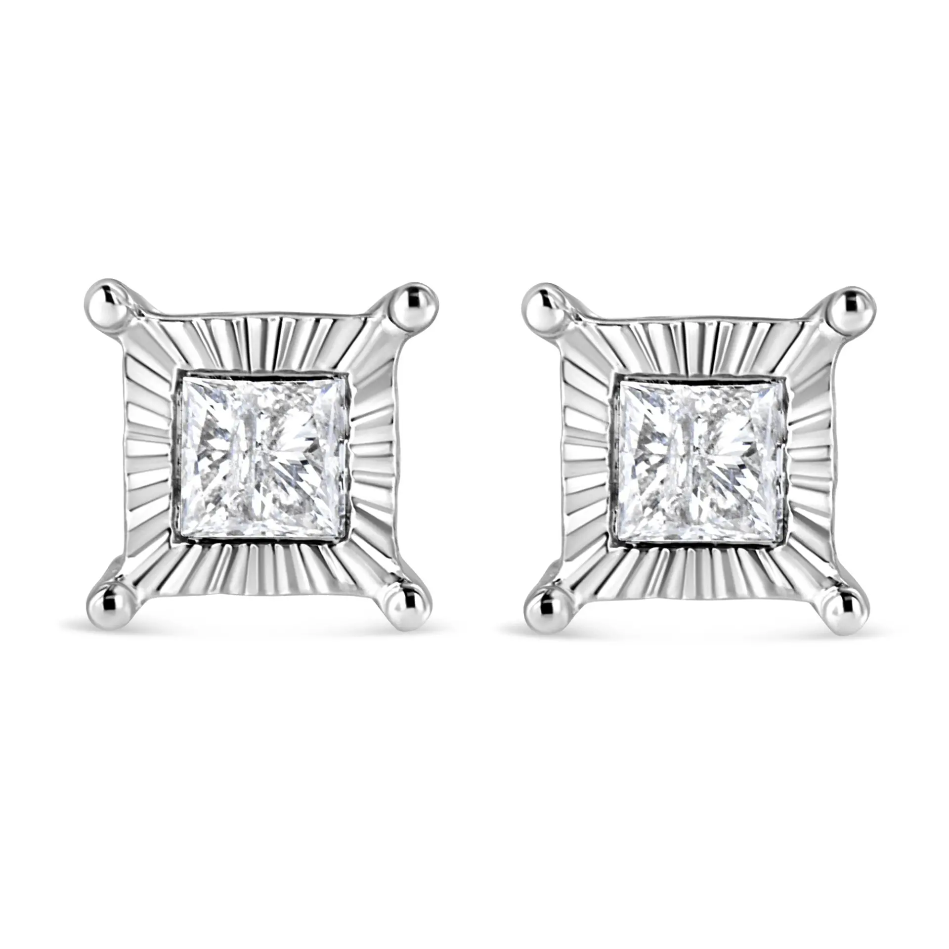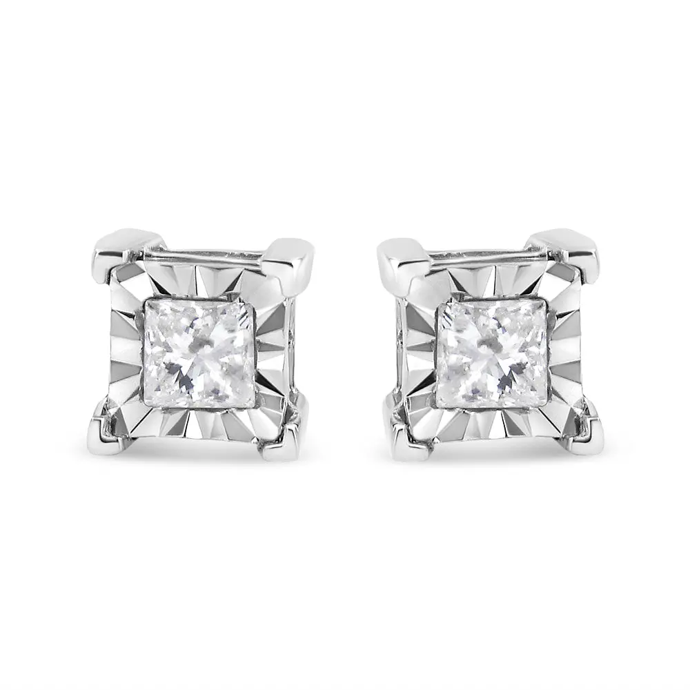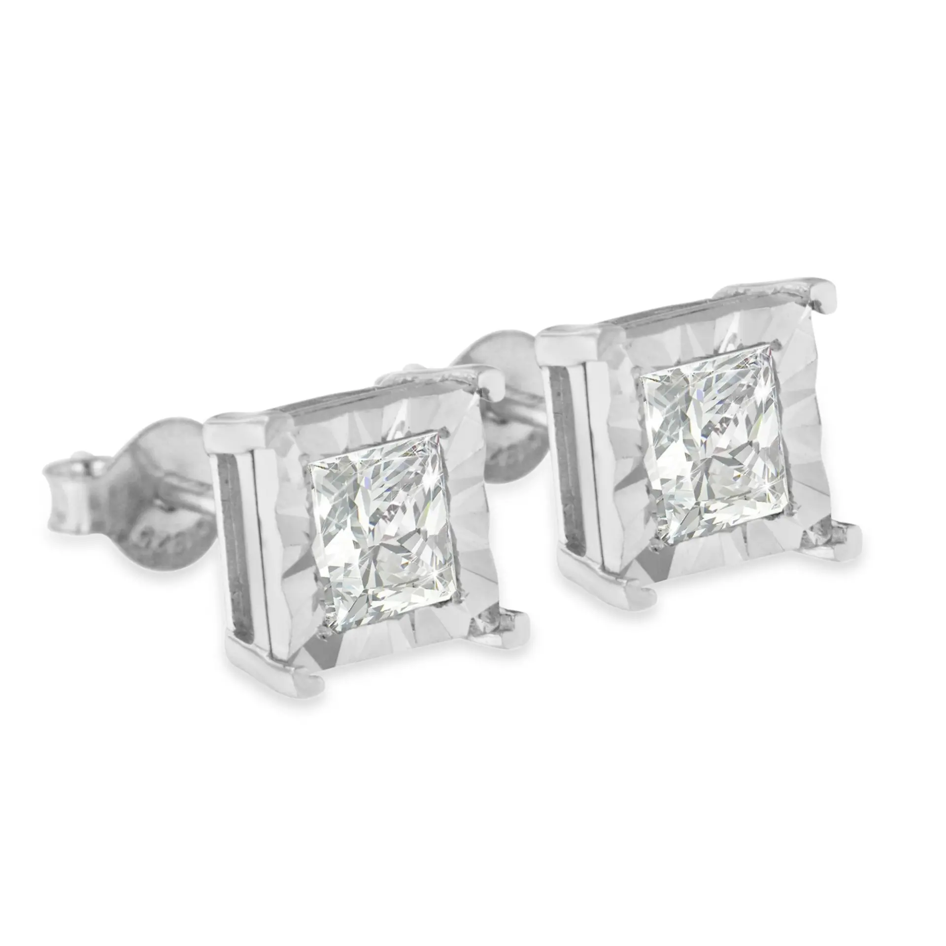 .925 Sterling Silver Miracle Set Princess-cut Diamond Solitaire Stud Earrings (H-I Color, I2-I3 Clarity)