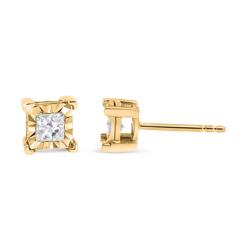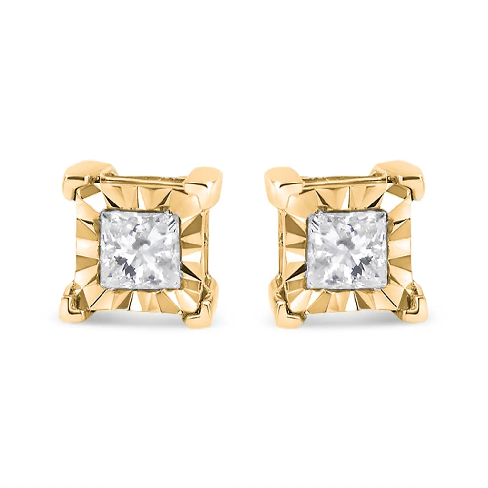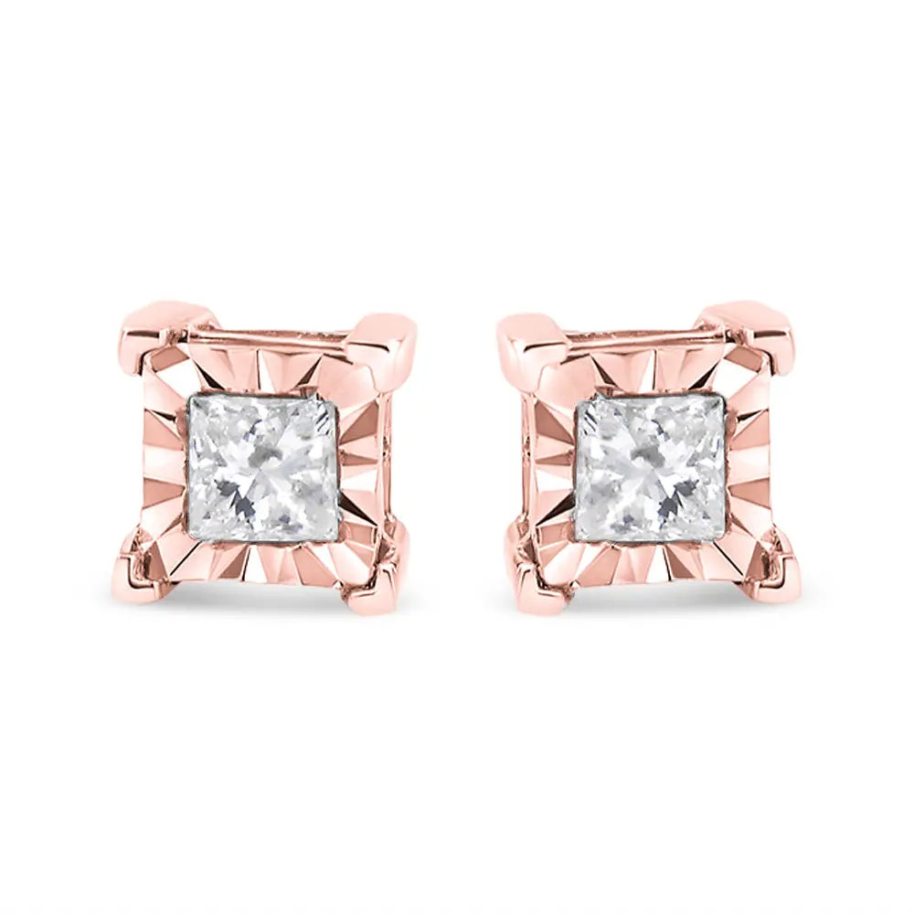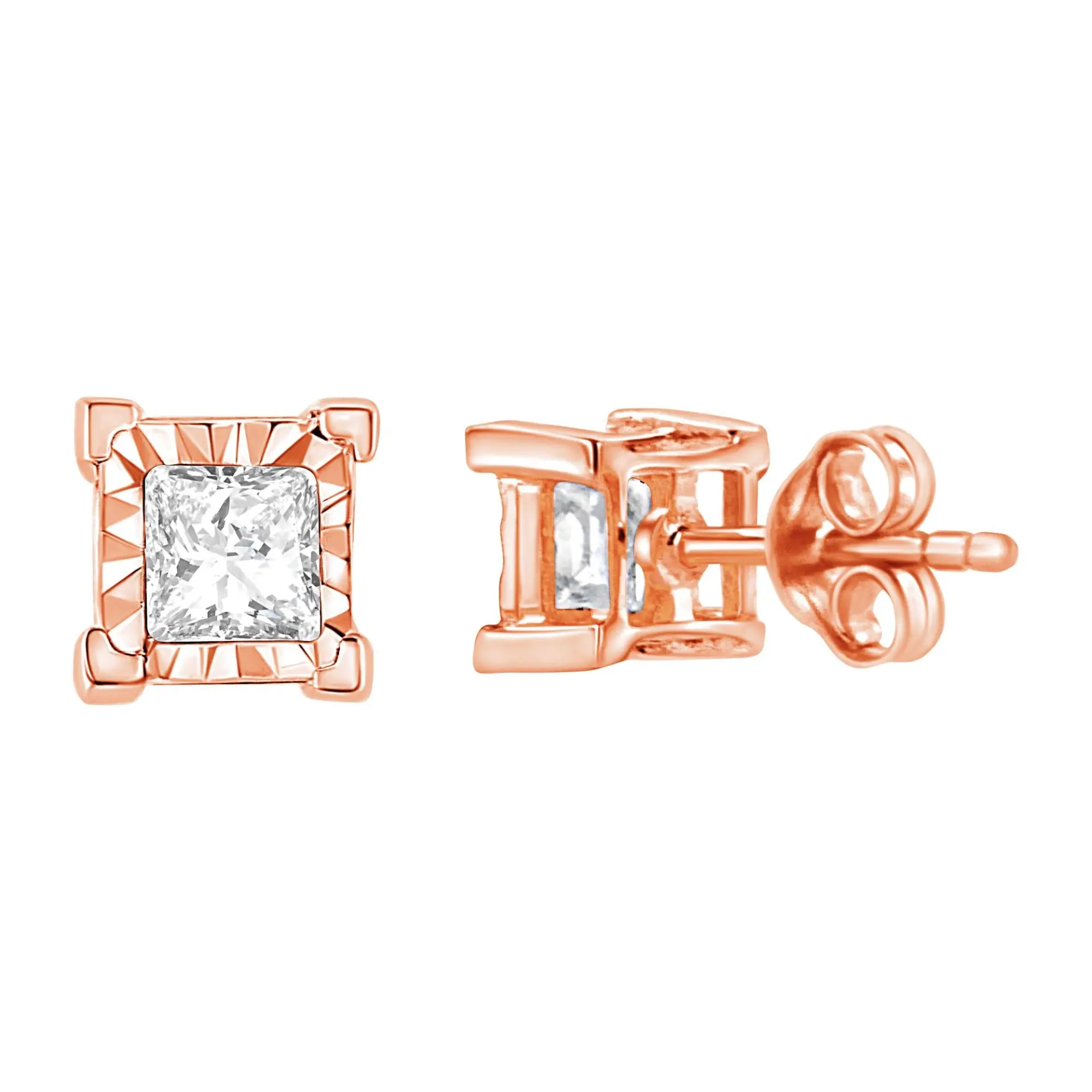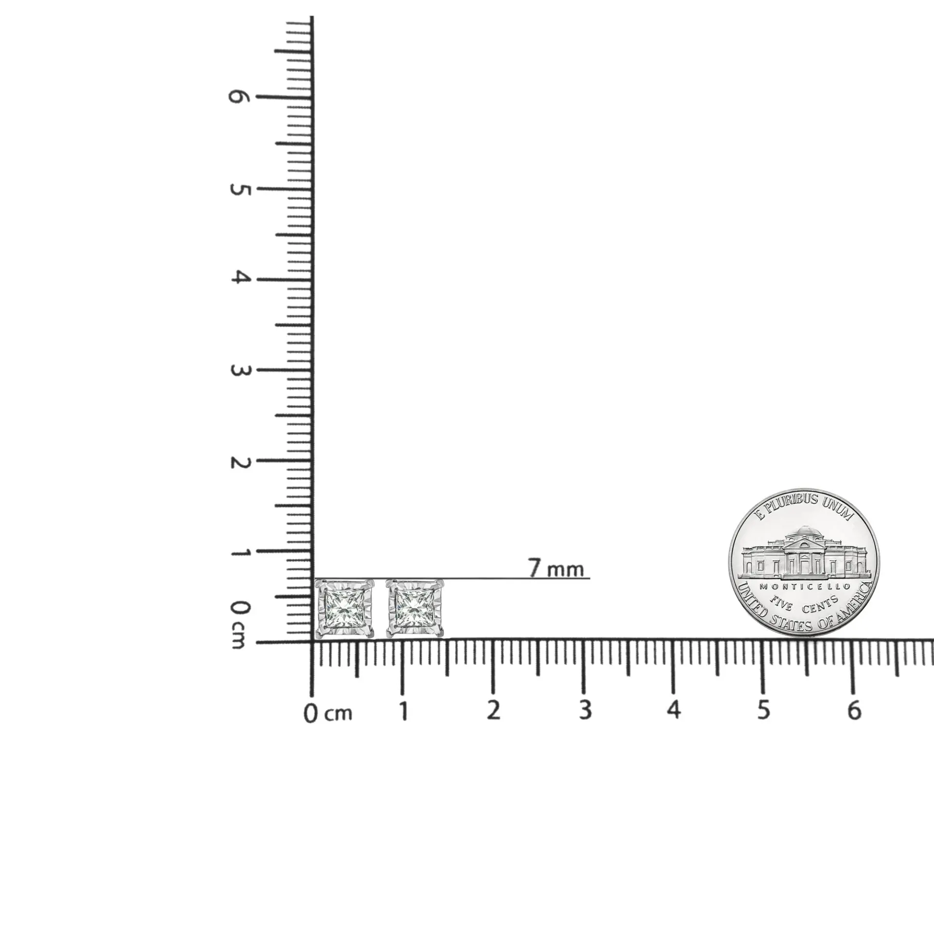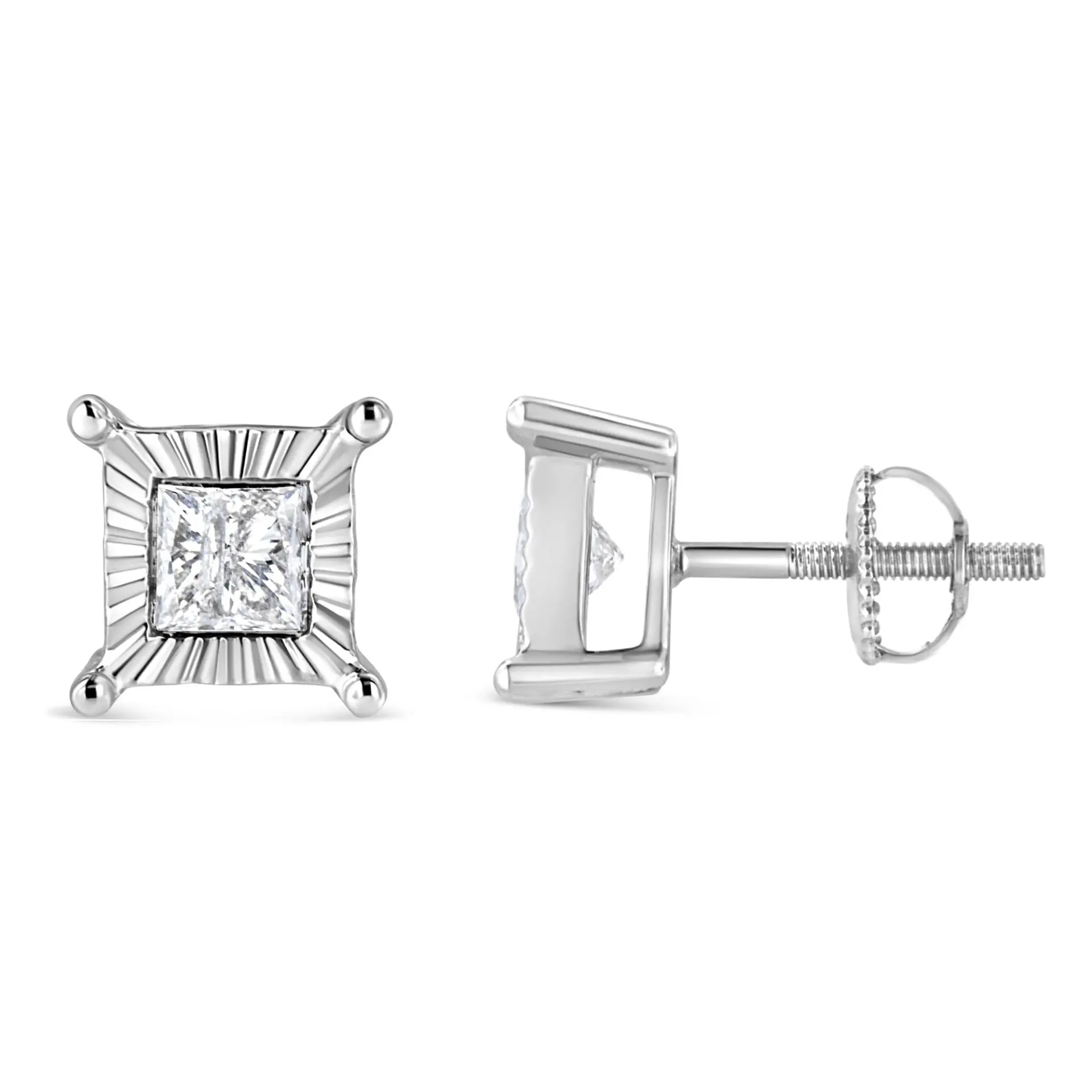 .925 Sterling Silver Miracle Set Princess-cut Diamond Solitaire Stud Earrings (H-I Color, I2-I3 Clarity)