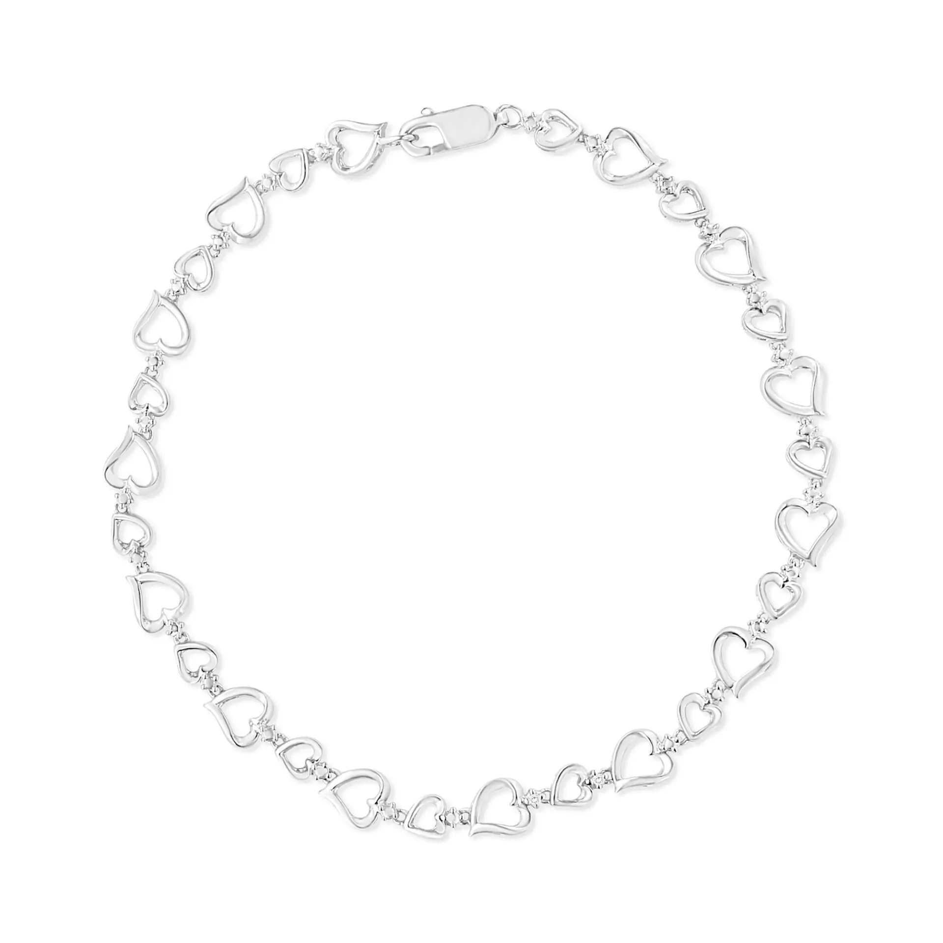 Treat yourself to this elegant and refined infinity link bracelet. Created in cool .925 sterling silver, this piece is designed with alternating heart links. This prong set, diamond accent piece is 7.25 inches in length and will be the perfect addition to your jewelry collection.