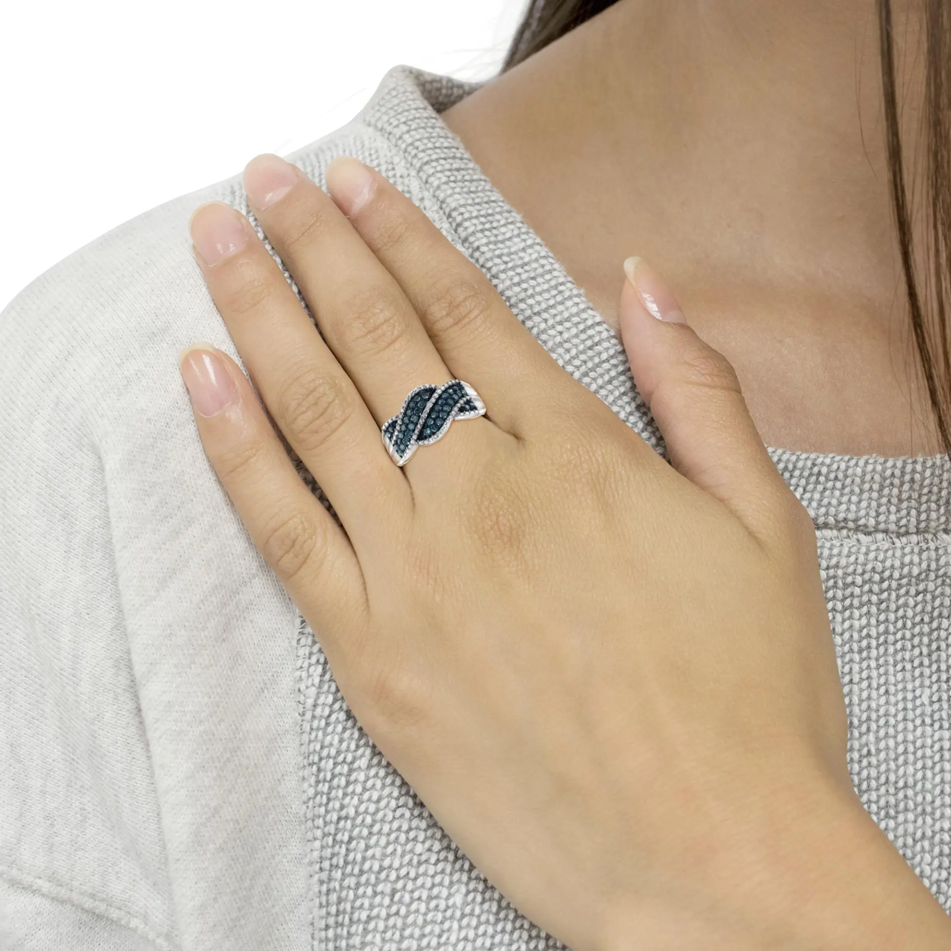 This beautiful ring will add a sophisticated charm to your look. Created in sterling silver, the ring shines radiantly with a high polish finish. Embellished with dazzling blue round-cut diamonds and accented with white beads, this ring will make your hands to sparkle like a star. The graceful ornament is sure to complement any evening attire with grace.