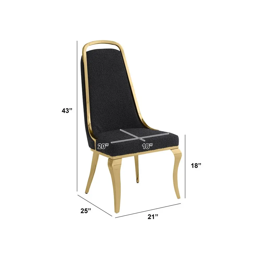 9Pc Tampered Glass Dining Set With 8 Black Boucle Side Chairs And A Gold Base