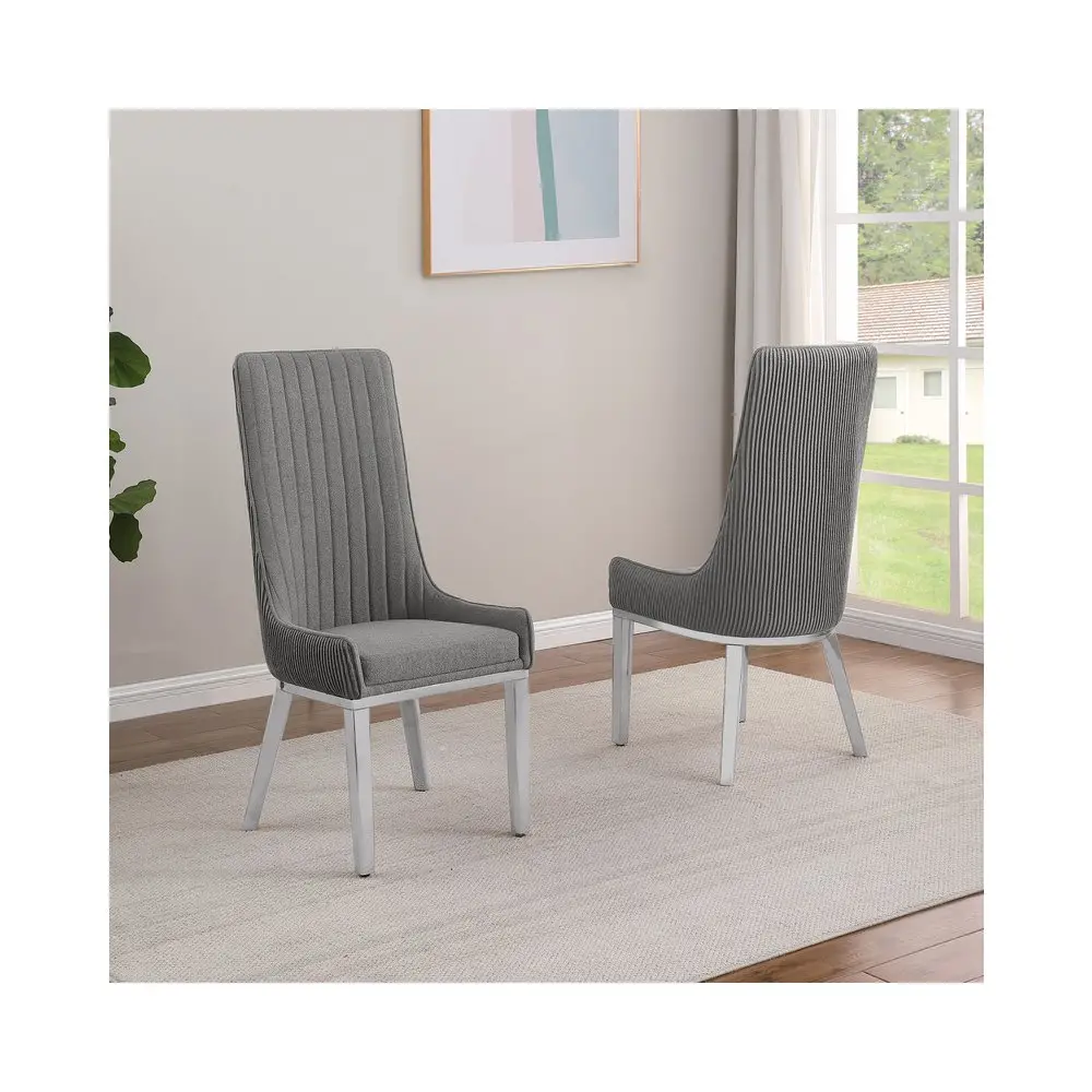 Be the first to review “9Pc Tempered Glass Dining Set 8 Rich Gray Boucle Side Chairs And Silver Base”
