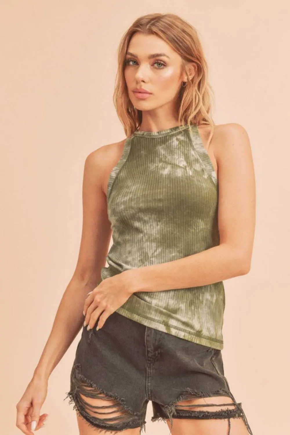 Aemi + Co Ribbed Tie-Dye Round Neck Tank