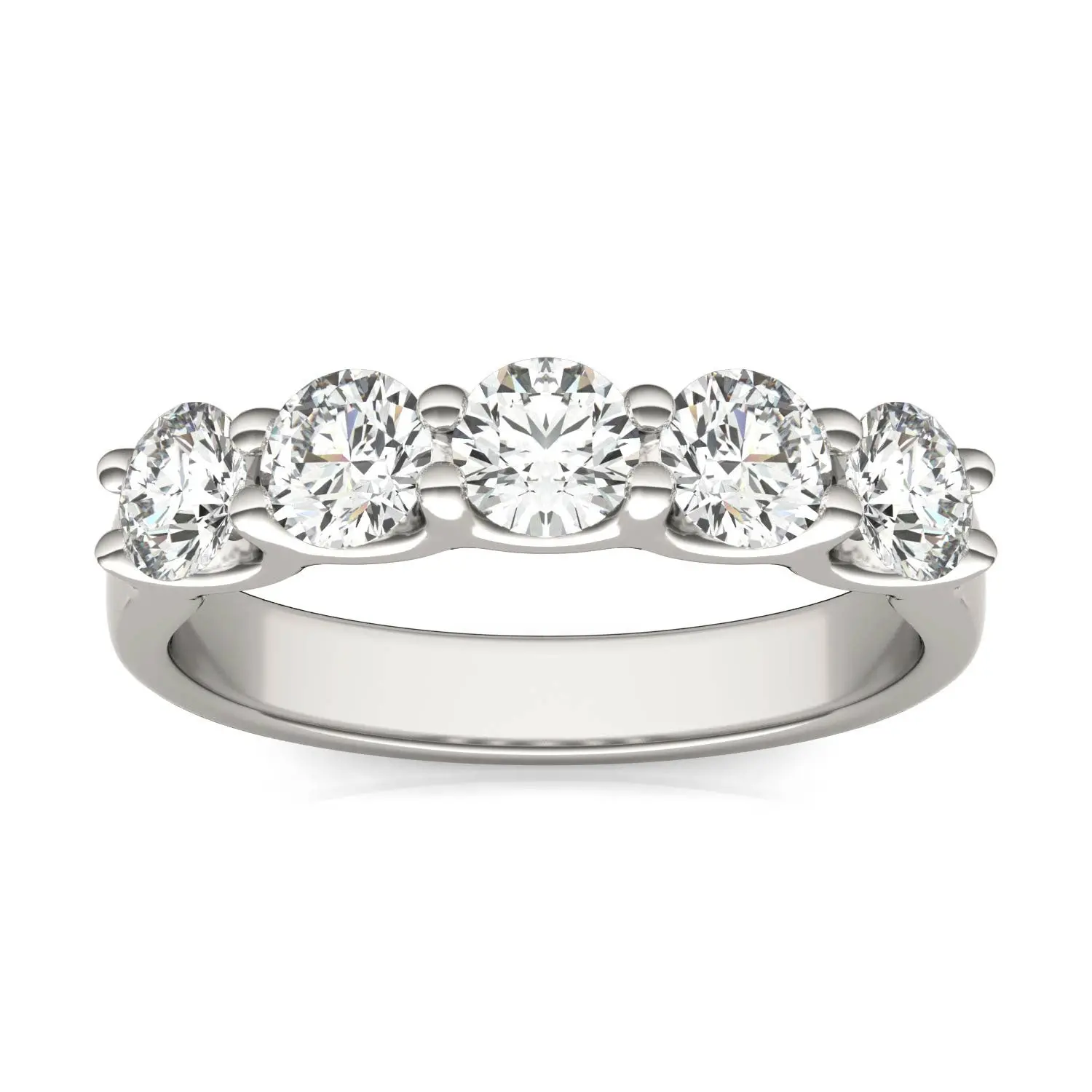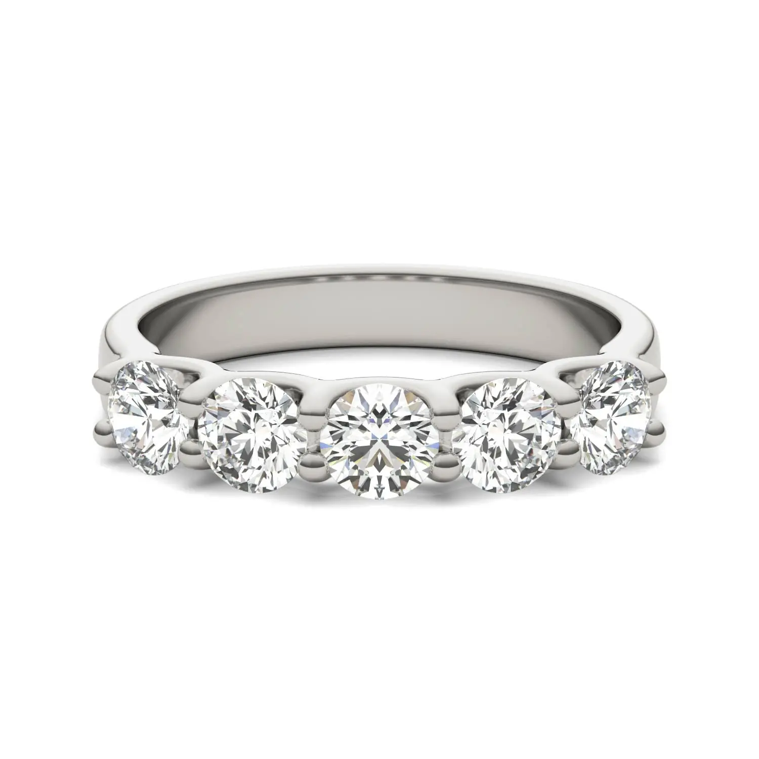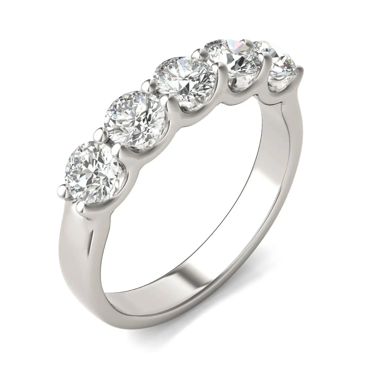 AGI Certified 1 1/4 CTW Round Lab Grown Diamond (G/VS) Five Stone Anniversary Band in 14K White Gold