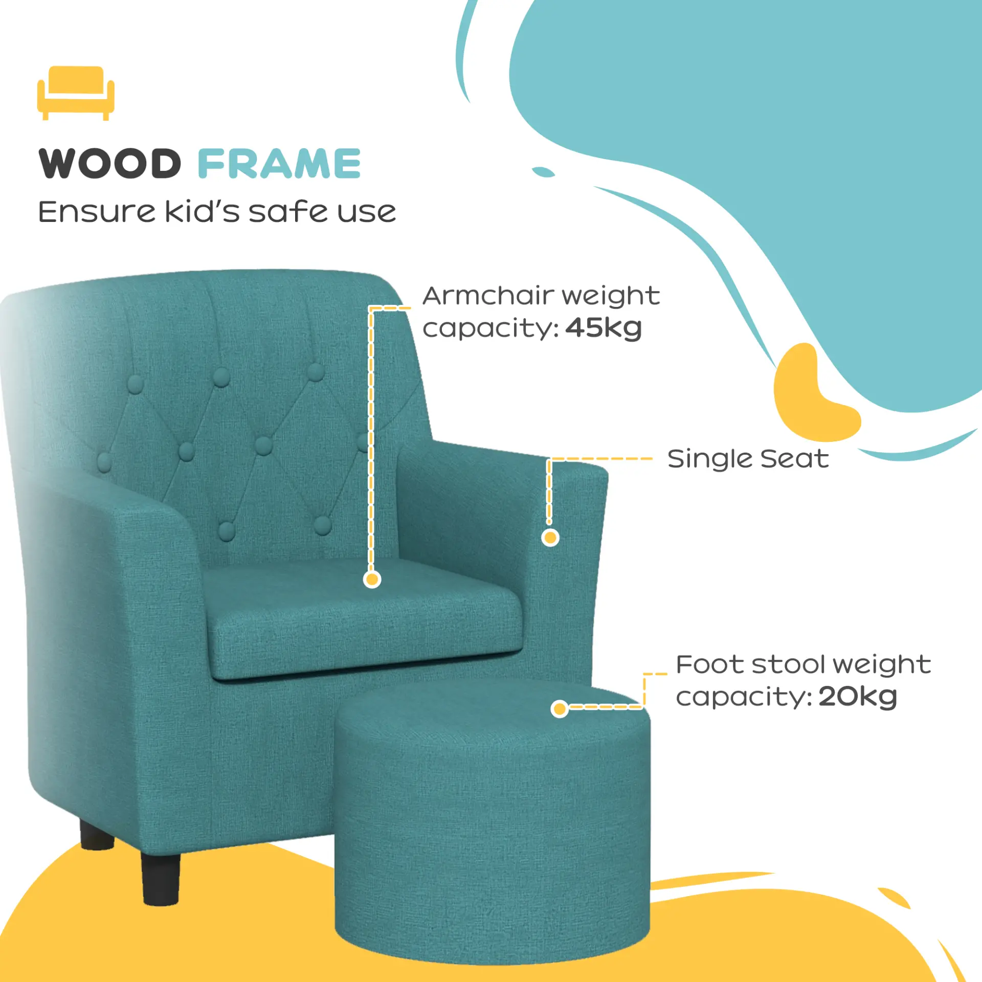 - Soft seating: Constructed with a wooden frame and sponge, the kid’s armchair and ottoman set offers a soft and inviting place for your child to rest or read.