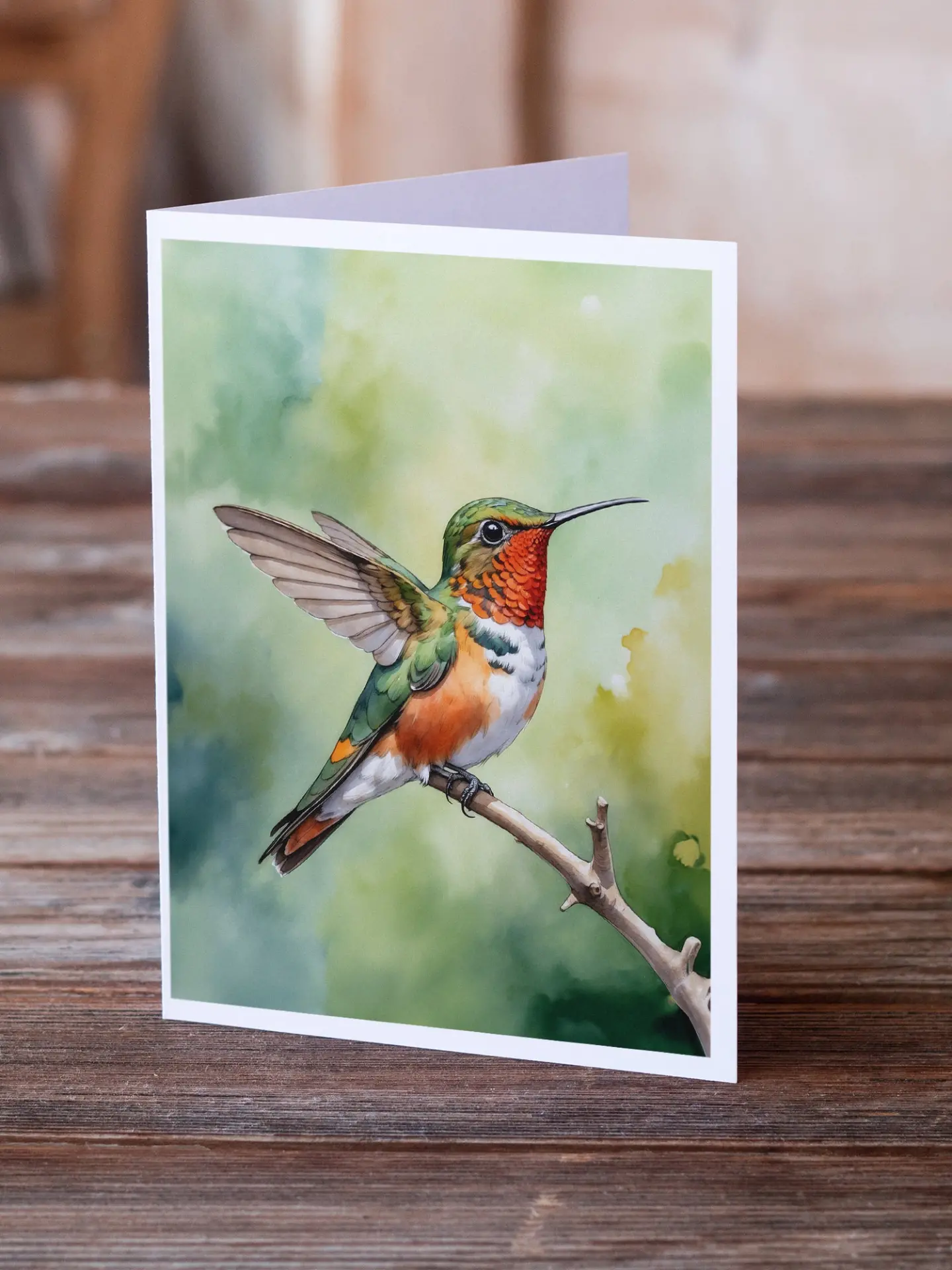 Greeting Cards Pack of 8 featuring breed specific Allens Hummingbird artwork. Celebrate special moments with Caroline’s Treasures Printed Greeting Card Pack. This pack includes eight beautifully folded 5×7 cards, accompanied by eight matching white envelopes. With blank interiors, these cards provide ample space for your personalized messages and heartfelt holiday greetings. Each card features captivating full-color artwork, meticulously printed in our facility on high-quality 80 lb cover stock or 216 GSM. The super smooth finish of the white cards enhances the visual impact of the artwork, creating a truly stunning presentation. Designed by our talented in-house artists or licensed artists, the artwork on these cards showcases their creativity and attention to detail. From vibrant illustrations to captivating designs, each card tells its own unique story. Whether it’s for birthdays, anniversaries, holidays, or any special occasion, Caroline’s Treasures Greeting Card Pack is the perfect way to convey your heartfelt sentiments. Share joy, love, and warm wishes with these exquisite cards and make every moment unforgettable.