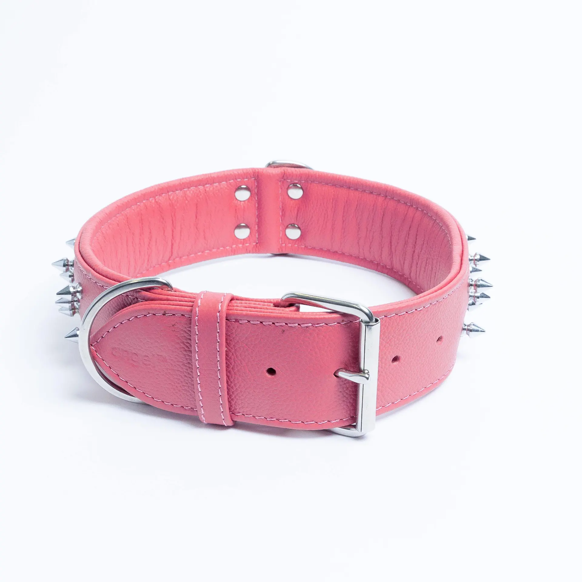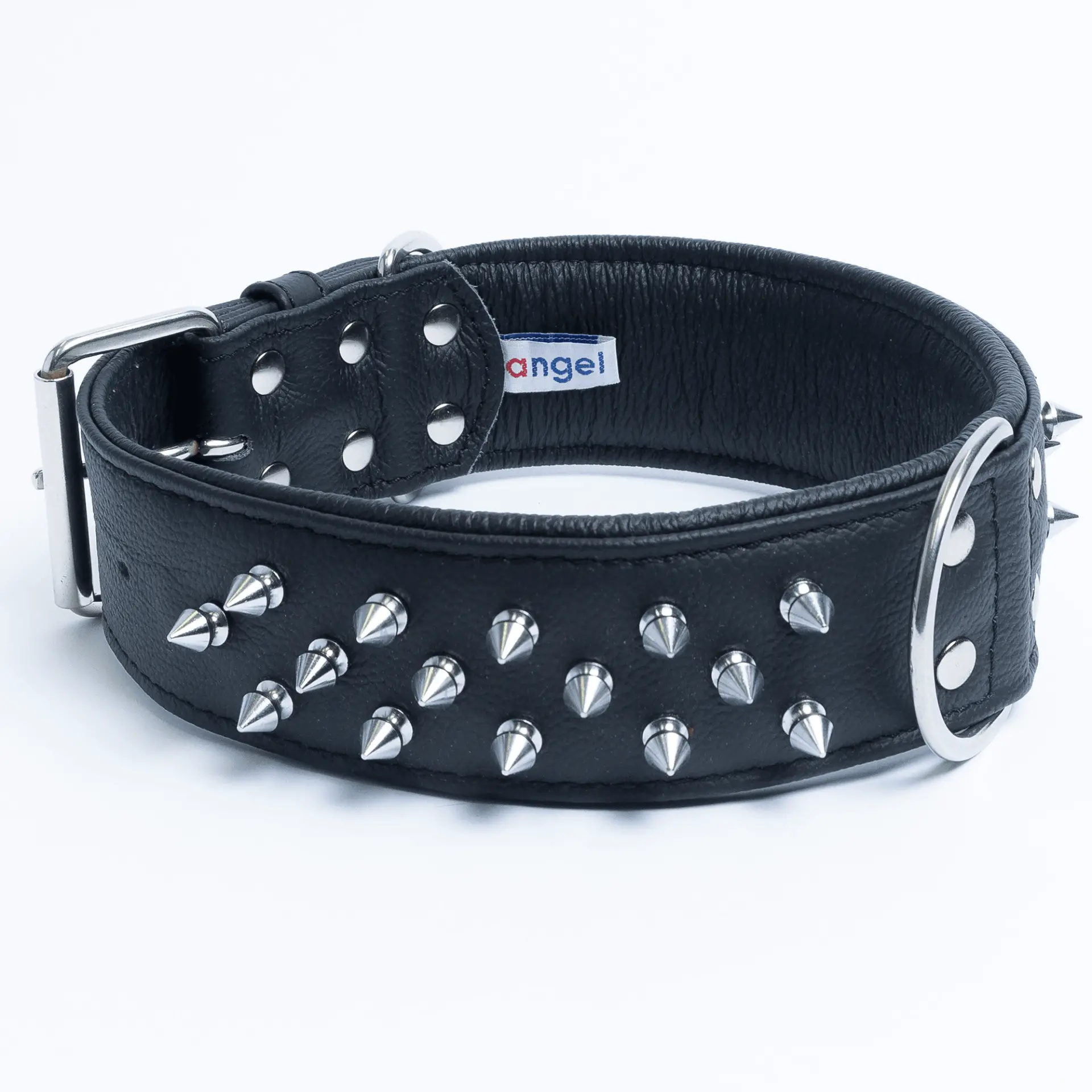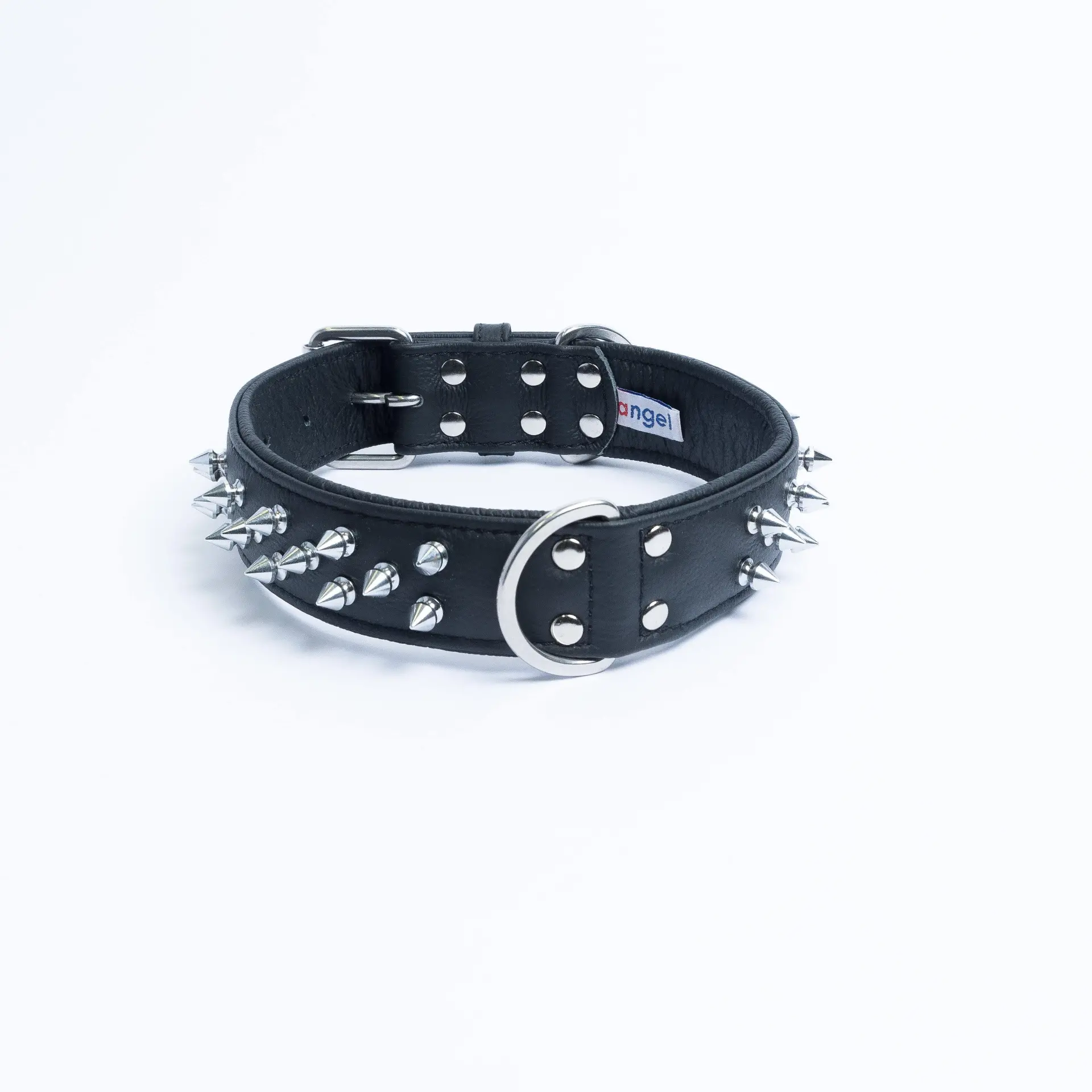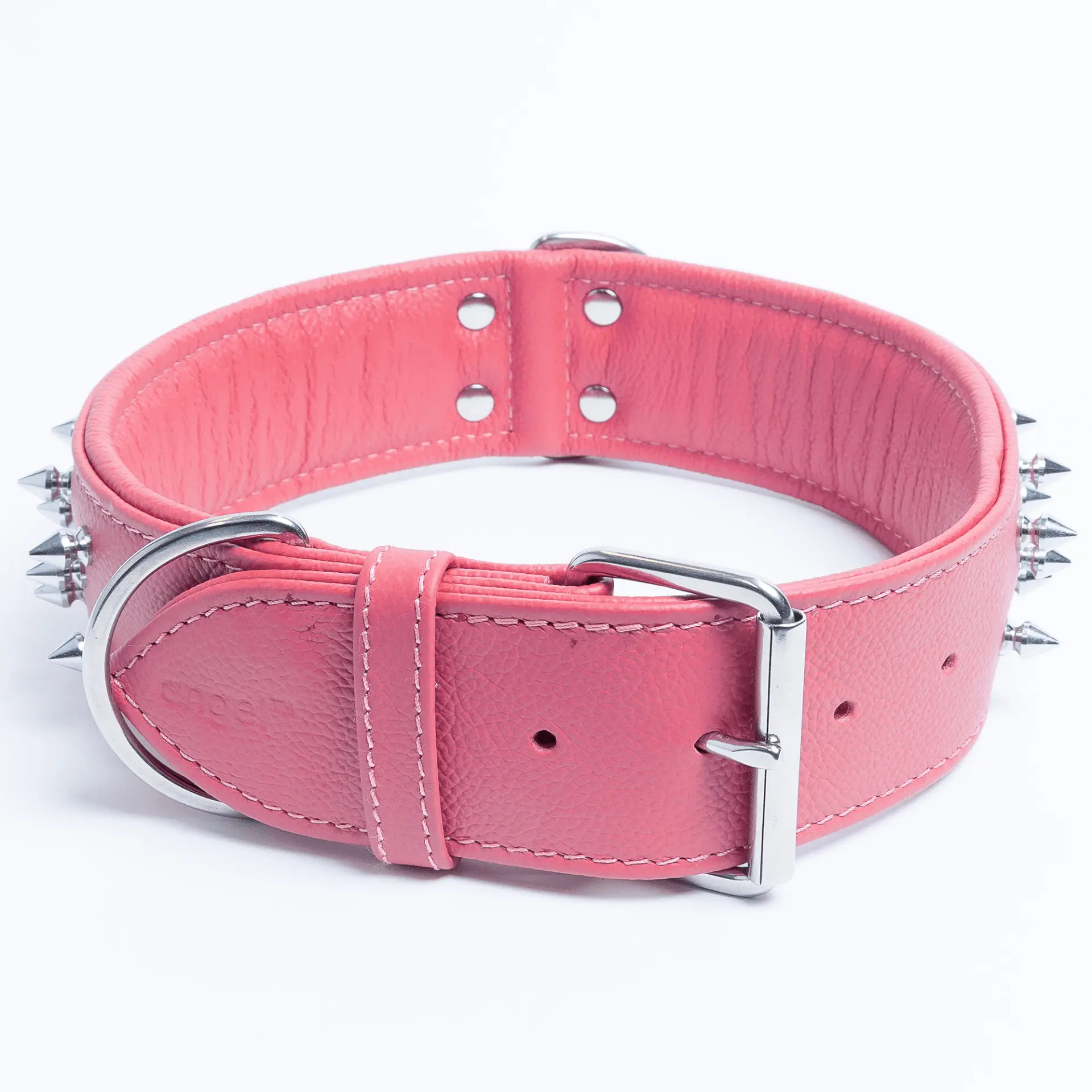 For the real connoisseur, these multi- lined spiked collars will have your dog walking with their head and tail up in the air. Available from 22″ to 28″ Strap length), these collars are made from a super softgenuine leather and stainless steel hardware for maximum strength and durability. You will notfind a more comfortable collar for your dog to wear. A Center Dee ring is present to ensure maximum control and exposure. Available in 4 gorgeous shades.