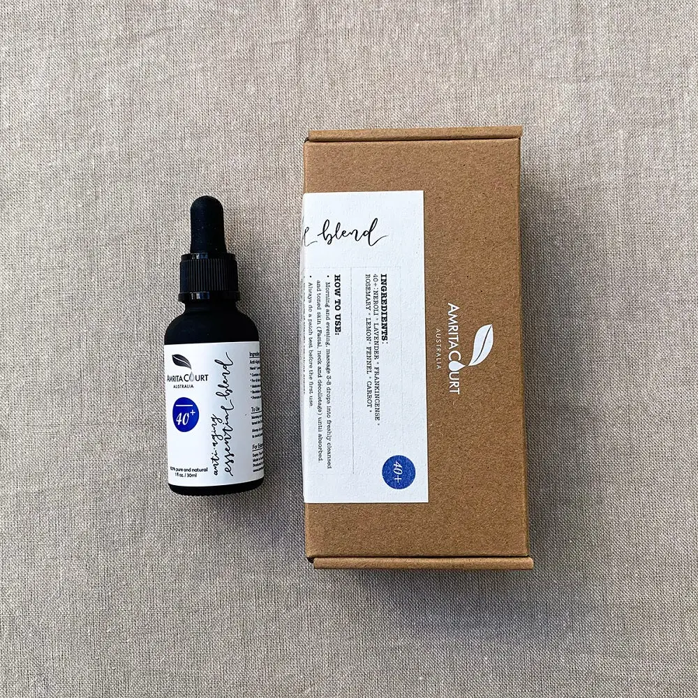 Combat the signs of aging and protect your skin from free radicals and oxidative stress with our luxurious Anti-Aging Essential Blend 40+ featuring Neroli. It optimises all the sensational benefits essential oils have to offer.