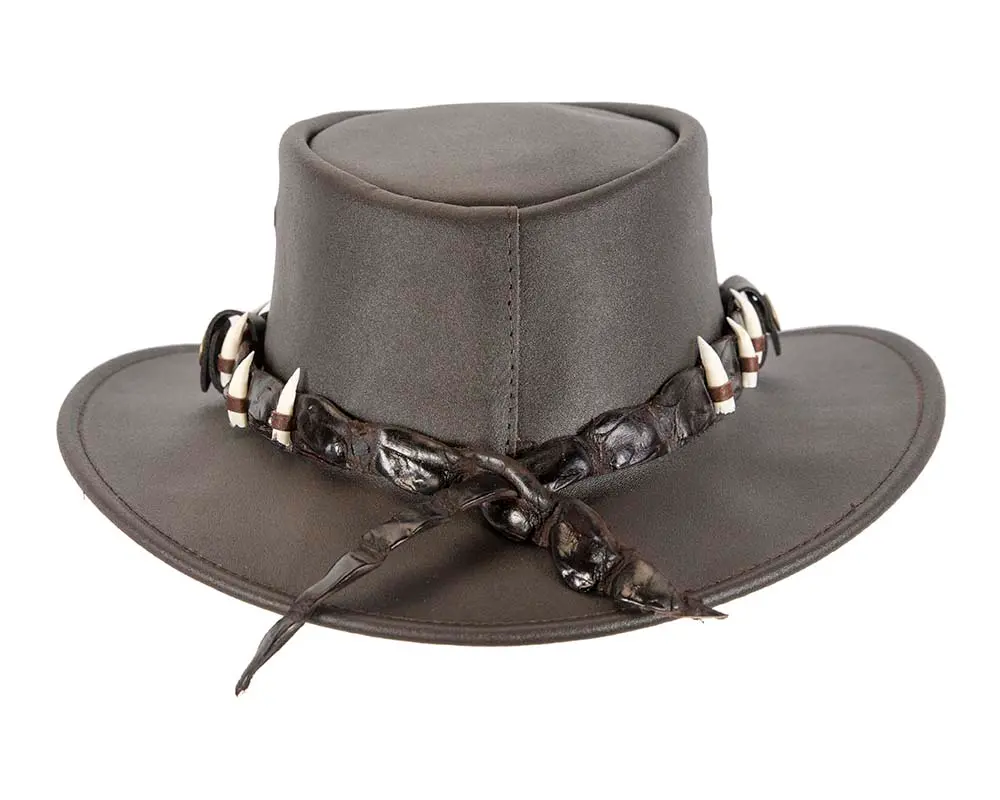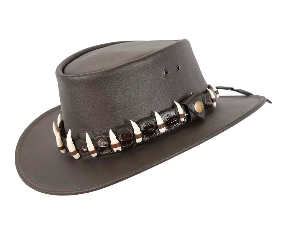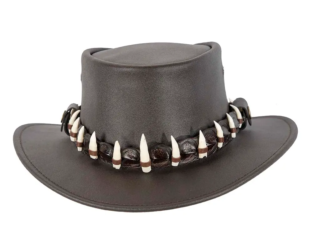 Australian Leather Outback Jacaru Hat with 15 Crdile Teeth
