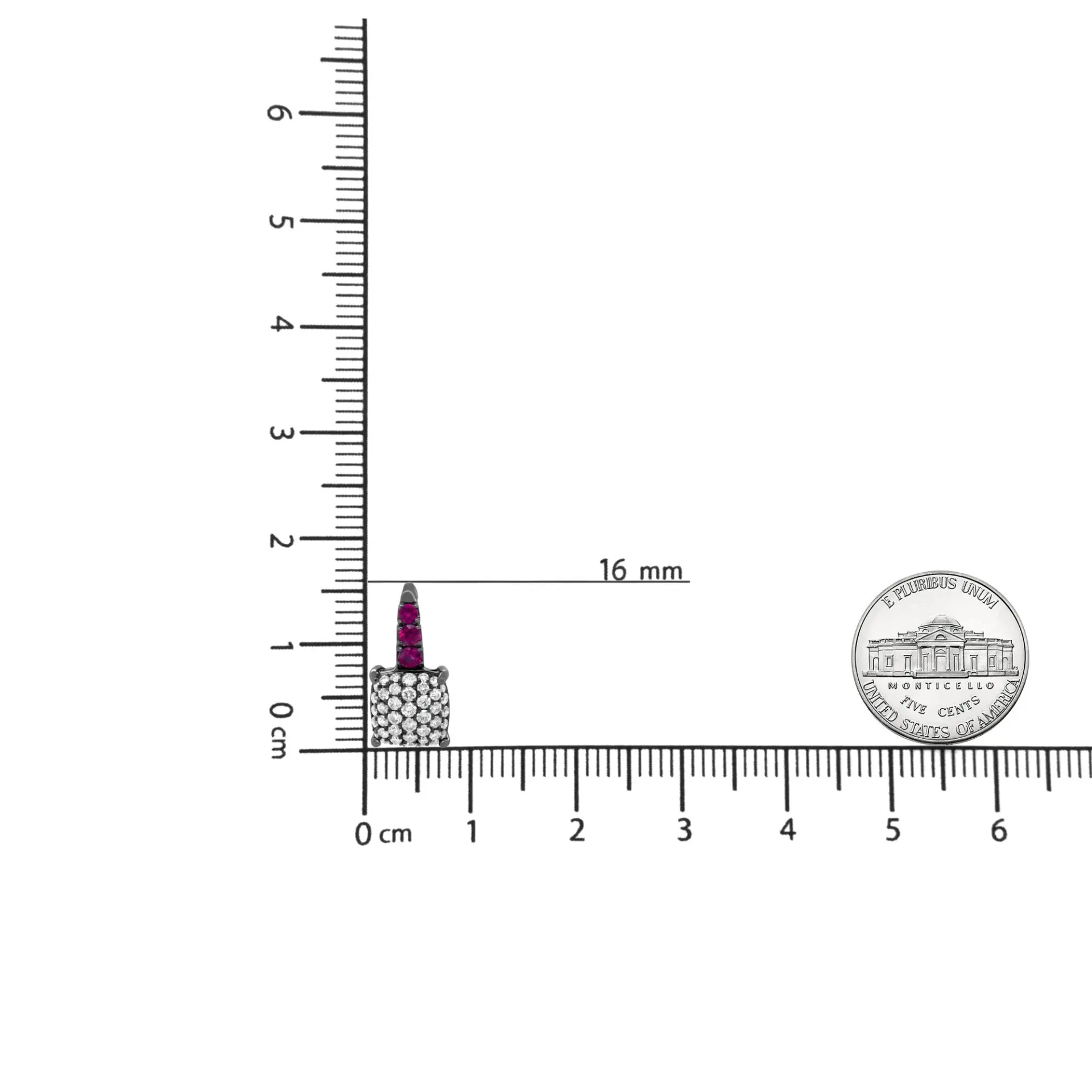 Presenting an exquisite style, this pair of drop earrings celebrates the mystery and vivacity of life with its rich and sexy color palette. Crafted of black rhodium plated 18k white gold, these earrings feature an upper dangle with a graduated vertical row of natural, heat-treated round red rubies. They progress from smallest down to the largest, sized at 2.8mm for the smallest, 2.5mm in the center, and 2mm for the biggest gemstone. The lower dangle takes on a square silhouette encrusted with prong-set round diamonds. These diamonds total 7/8 cttw with an approximate F-G Color and VS1-VS2 Clarity. Lever backs keep these pierced earrings safe and secure on your ears.