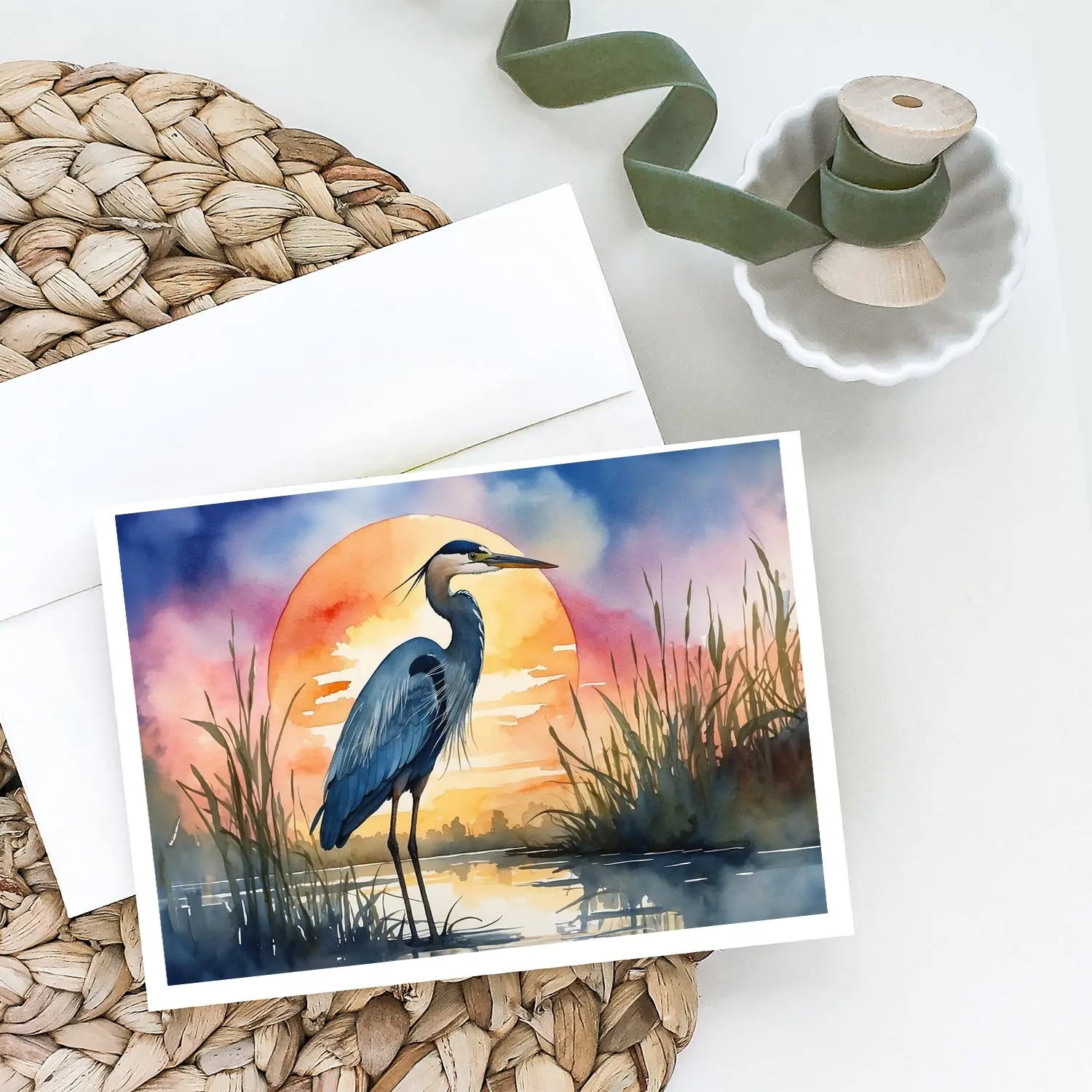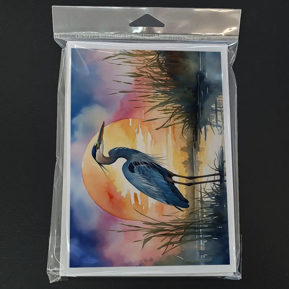 Blue Heron Setting Sun Greeting Cards Pack of 8