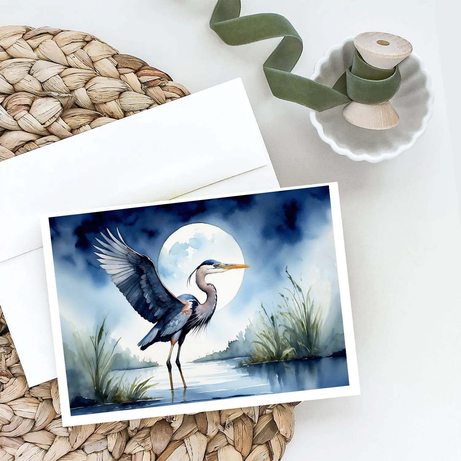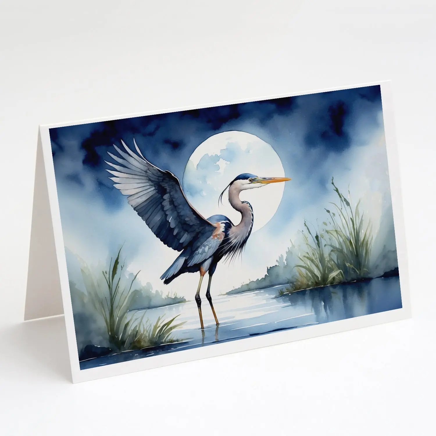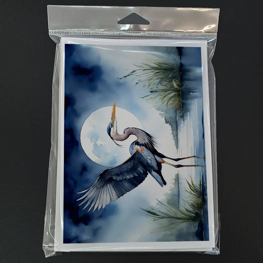 Blue Heron Under the Moonlight Greeting Cards Pack of 8