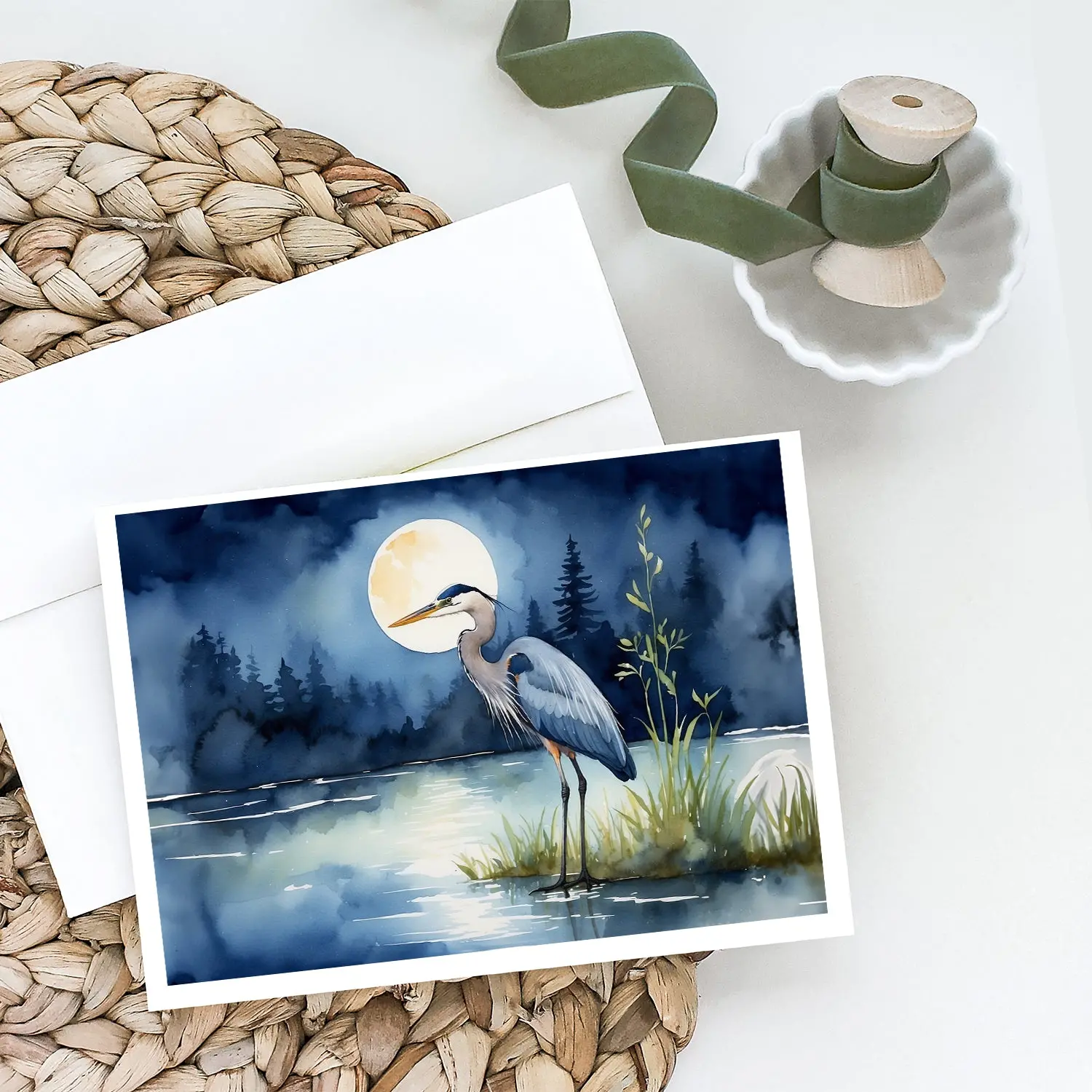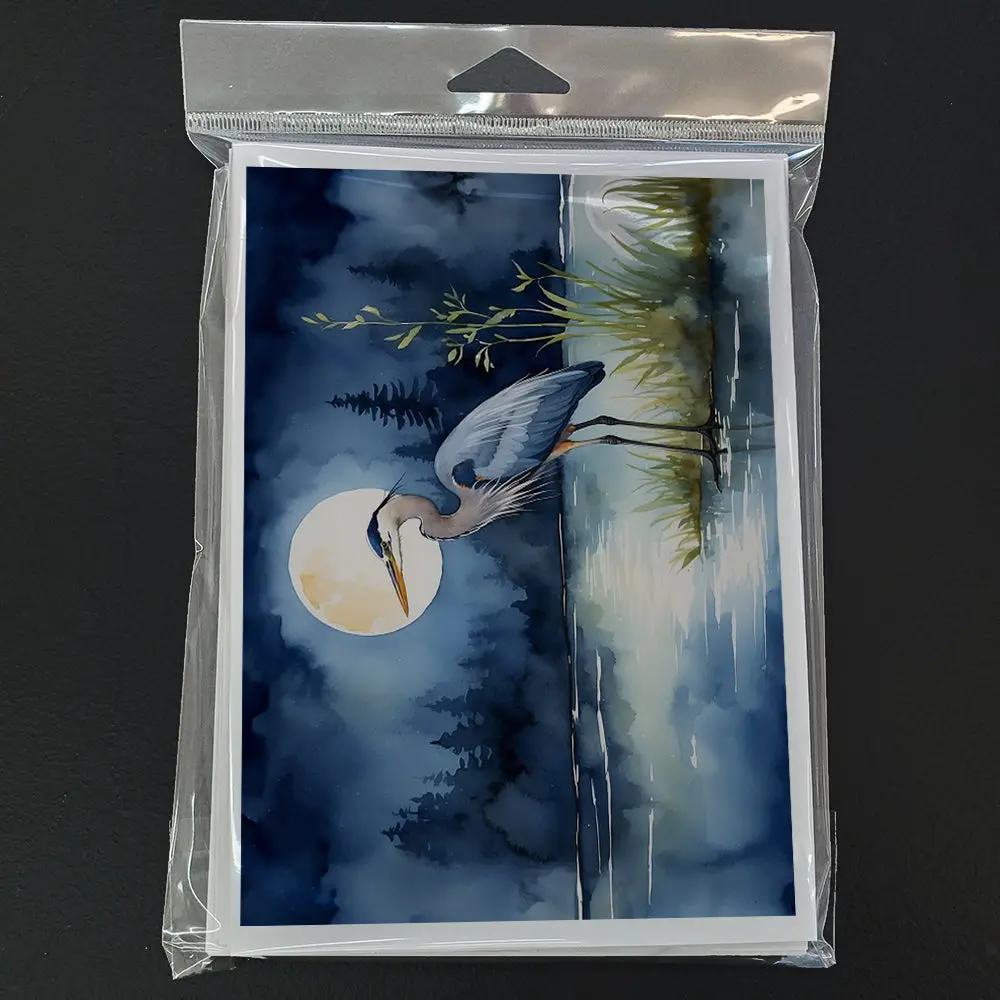 Blue Heron Under the Moonlight Greeting Cards Pack of 8