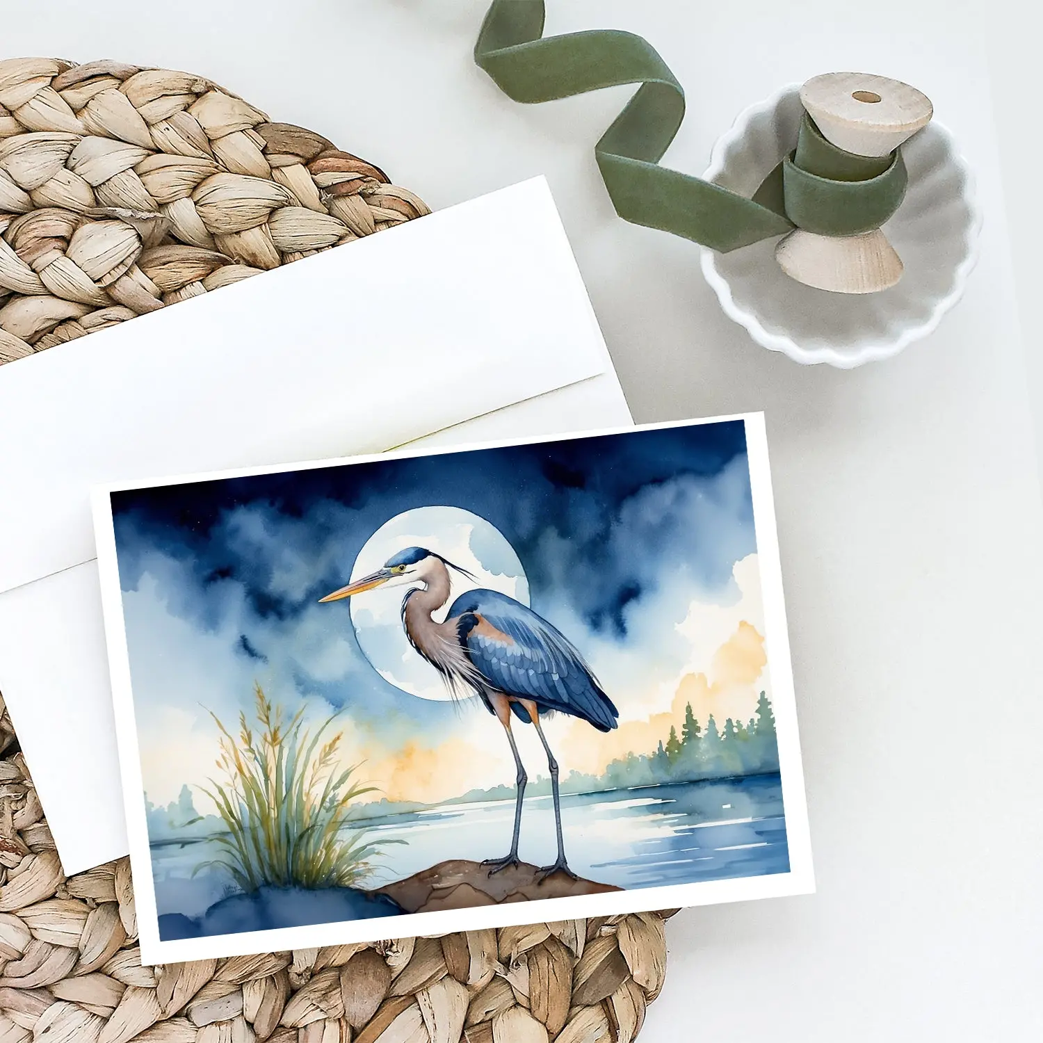 Blue Heron Under the Moonlight Greeting Cards Pack of 8