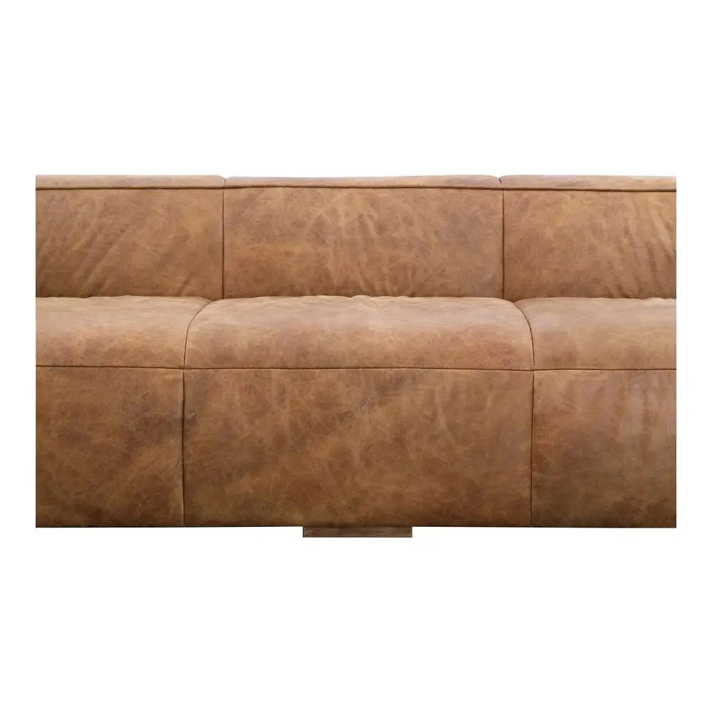 Top-grain leather upholstery with comfortable foam seating Sturdy corner blocked, solid wooden frame with subtly exposed leg design 100% top-grain, aniline-dyed leather will age, lighten & soften with both use & time & develop a rich patina. Fabric & leather dye lots vary; pieces purchased at different times may not match exactly. To minimize fading, please avoid direct exposure to sunlight