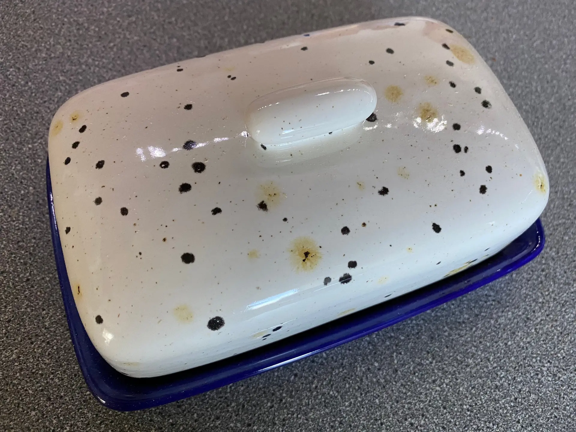Handmade and individually hand glazed to ensure high quality. This lovely butter dish will keep your butter soft, fresh and easily spreadable. A perfect and unique gift for your home. A unique wedding gift with confetti glaze.