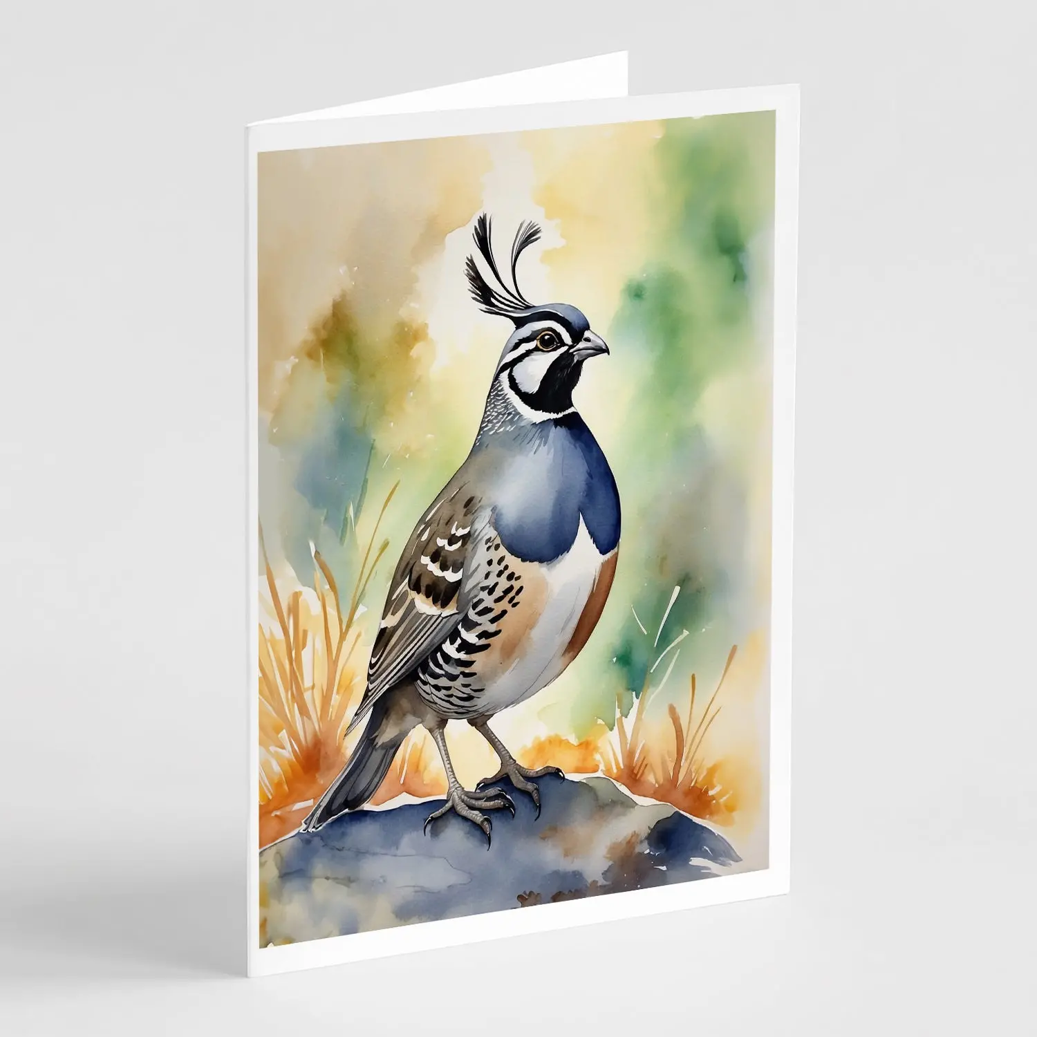 Greeting Cards Pack of 8 featuring breed specific California Quail artwork. Celebrate special moments with Caroline’s Treasures Printed Greeting Card Pack. This pack includes eight beautifully folded 5×7 cards, accompanied by eight matching white envelopes. With blank interiors, these cards provide ample space for your personalized messages and heartfelt holiday greetings. Each card features captivating full-color artwork, meticulously printed in our facility on high-quality 80 lb cover stock or 216 GSM. The super smooth finish of the white cards enhances the visual impact of the artwork, creating a truly stunning presentation. Designed by our talented in-house artists or licensed artists, the artwork on these cards showcases their creativity and attention to detail. From vibrant illustrations to captivating designs, each card tells its own unique story. Whether it’s for birthdays, anniversaries, holidays, or any special occasion, Caroline’s Treasures Greeting Card Pack is the perfect way to convey your heartfelt sentiments. Share joy, love, and warm wishes with these exquisite cards and make every moment unforgettable.