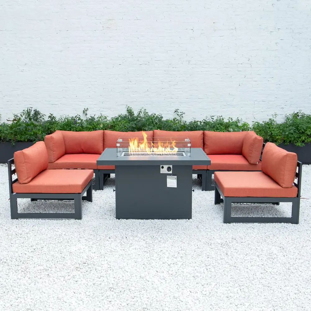 Create the perfect seating arrangement with 2 armchairs, 2 corner chairs, and 2 armless chairs. Plus, a fire pit table with crystal stones for the ultimate cozy centerpiece. Powder-coated aluminum ensures durability and resilience against outdoor elements, making it perfect for conversation sets exposed to varying weather conditions. With 55,000 BTUs, a propane fuel type, and a gas tank storage, it’s the ideal choice for creating a warm outdoor ambiance. Simply bring your propane and batteries for easy ignition. When the lid is closed, the fire pit transforms into a versatile table, perfect for drinks, snacks, or decor, enhancing your outdoor space for various occasions. Tied cushions provide enhanced comfort by staying in place. This ensures a consistent and stable seating experience, preventing discomfort caused by uneven or shifting cushions. Floor protectors enable easy movement of furniture without damaging the floor, offering flexibility in rearranging outdoor sets to various layouts. This conversation set is easy to assemble, leaving you stress-free and with a little extra time on your hands.