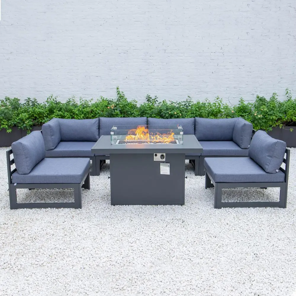 Create the perfect seating arrangement with 2 armchairs, 2 corner chairs, and 2 armless chairs. Plus, a fire pit table with crystal stones for the ultimate cozy centerpiece. Powder-coated aluminum ensures durability and resilience against outdoor elements, making it perfect for conversation sets exposed to varying weather conditions. With 55,000 BTUs, a propane fuel type, and a gas tank storage, it’s the ideal choice for creating a warm outdoor ambiance. Simply bring your propane and batteries for easy ignition. When the lid is closed, the fire pit transforms into a versatile table, perfect for drinks, snacks, or decor, enhancing your outdoor space for various occasions. Tied cushions provide enhanced comfort by staying in place. This ensures a consistent and stable seating experience, preventing discomfort caused by uneven or shifting cushions. Floor protectors enable easy movement of furniture without damaging the floor, offering flexibility in rearranging outdoor sets to various layouts. This conversation set is easy to assemble, leaving you stress-free and with a little extra time on your hands.