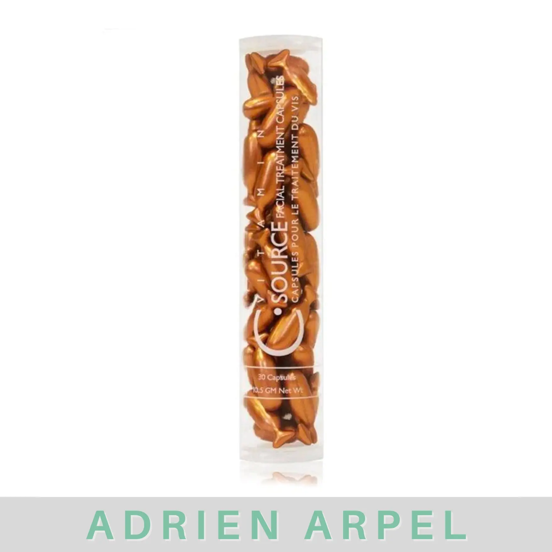 This silky formula of Vitamin C is encapsulated to ensure maximum stability and potency and it’s supercharged with an effective boosting dose of Vitamin E. This power-packed antioxidant duo uses amazing properties to actively fight collagen breakdown and increases its production. This action literally delays the formation of lines and wrinkles while the vitamin C softens the appearance of existing ones. While many anti-aging products actually thin the skin and strip off layers to achieve a more youthful effect, C Source actually strengthens skin and reduces irritation, redness and sensitivity. Your skin appears more softened, unlined and even-toned with a radiant glow. The formula is encapsulated to ensure maximum effectiveness and stability, using a brand new V-Gel technology. The new soft gel capsules are derived from seaweed. Thirty capsules per bottle, a one month supply for face and neck areas.