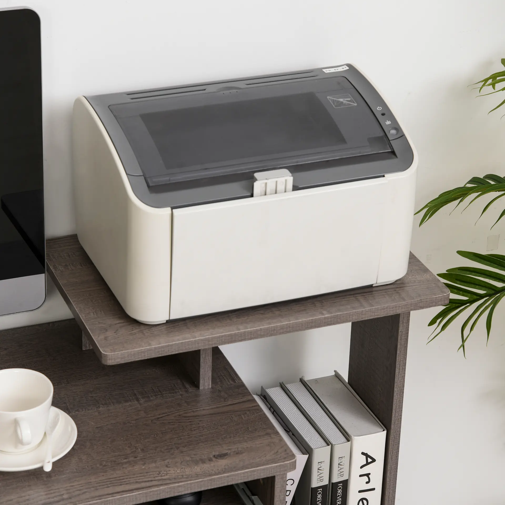 This HOMCOM computer desk boasts a totally unique design you’ll instantly fall for. Its obscure shape is formed of a moderately-sized tabletop, a keyboard tray, an open side shelf and a bottom drawer – giving you plenty of room to work and keep your papers etc. stored and organised. Made from particle board, the structure is durable and robust, with a smooth melamine coating to protect against light marks from daily use. It’s finished with a soft fabric drawer for discreet storage. A must for home/office spaces which like to look different.