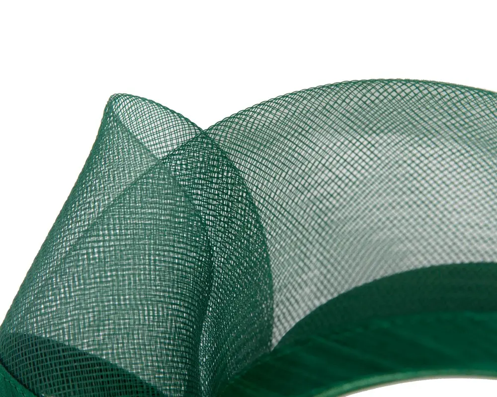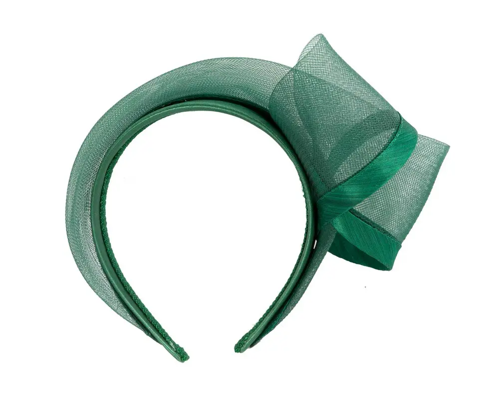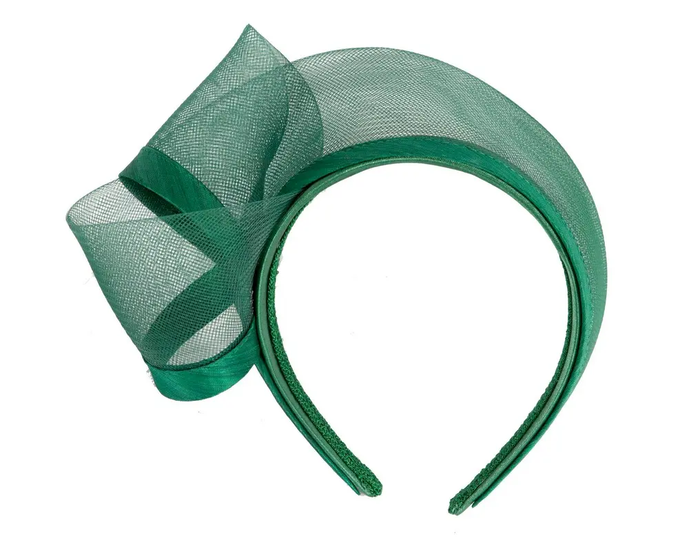 Dark Green racing fascinator. Hand made in Melbourne by our experienced milliners, this racing headpiece is made from twists of luxurious silk abaca and crinoline and placed on the comfortable headband.