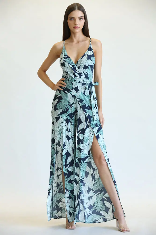 Delen – Leaf/palm Print Pattern Jumpsuit