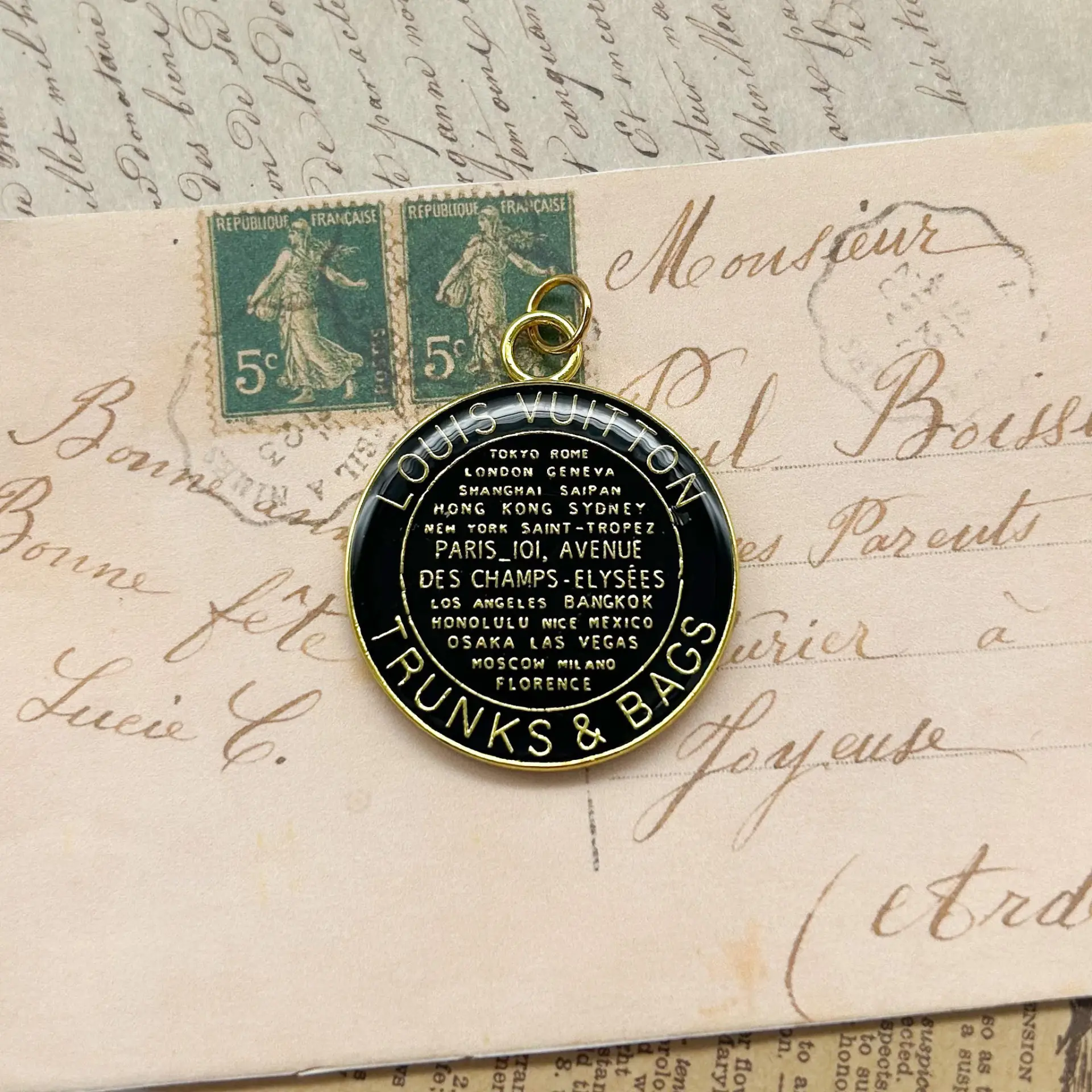 1 black shiny enamel zipper pull. Double-sided design. Goldtone metal alloy. 35mm – Please see photos for scale.