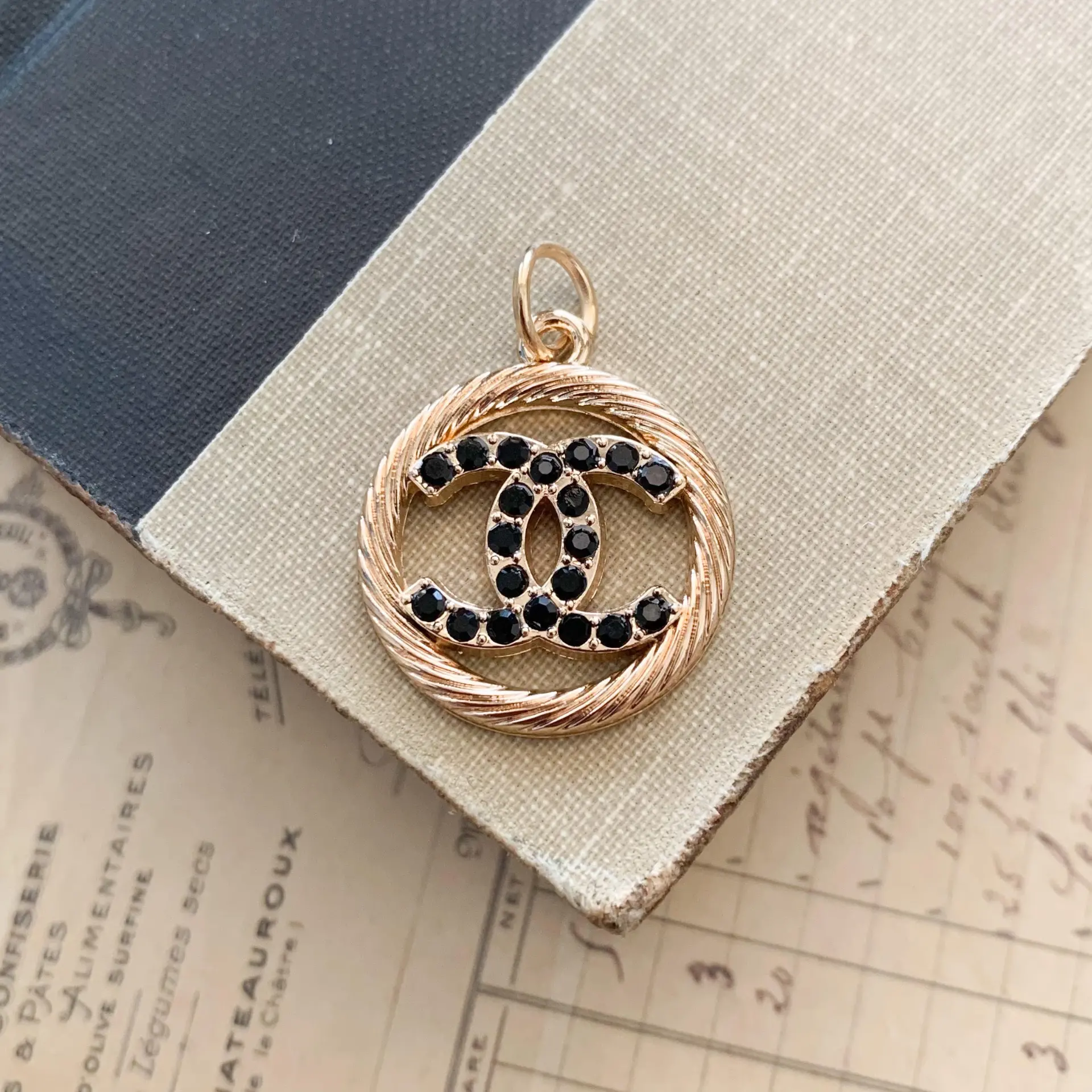 Set of 2blackheart-shaped buttons. Goldtone metal. Stamped on back. 15mm – Please see photos for scale.