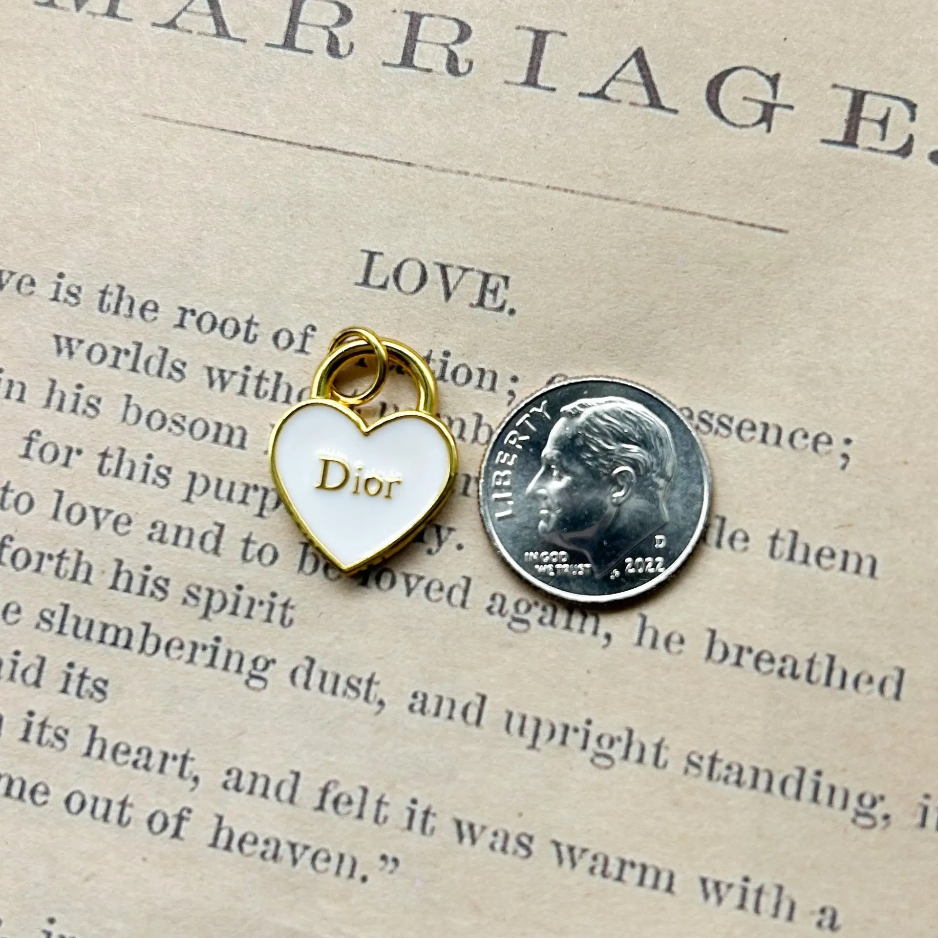 Zipper pull with white enamel. Goldtone metal. Double-sided design.. 13mm – Please see photos for scale.