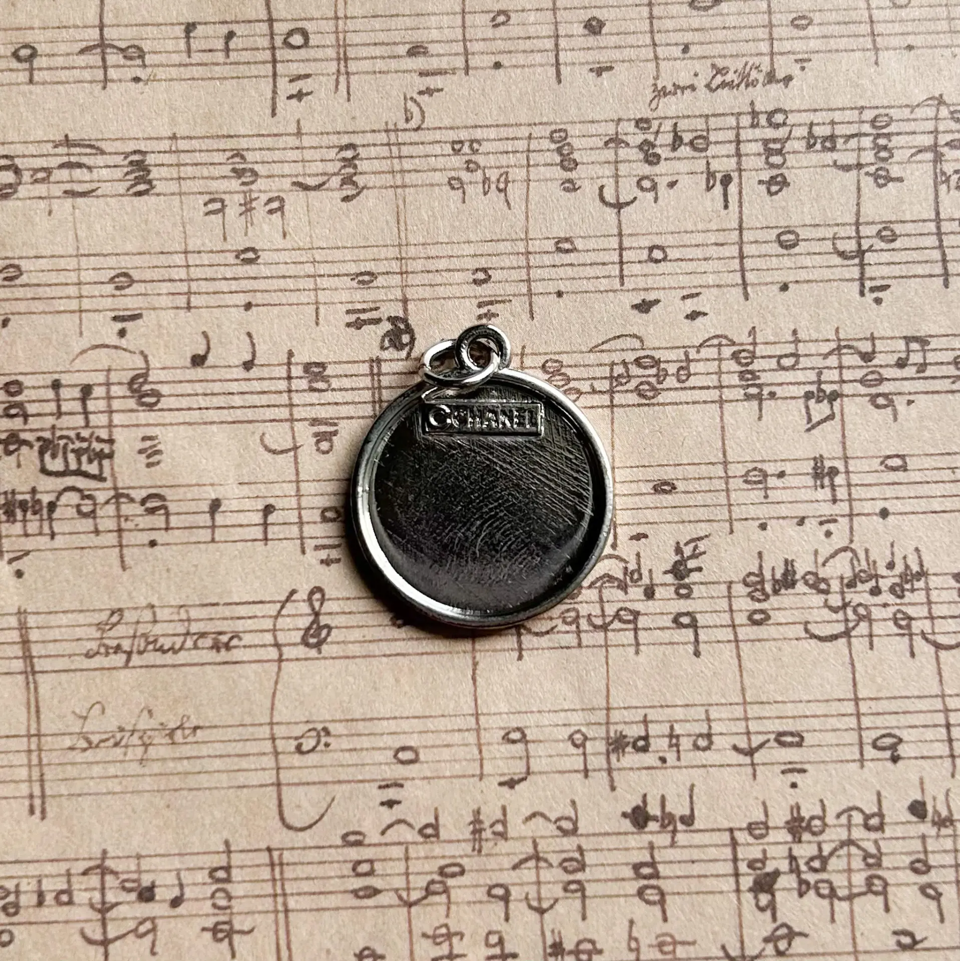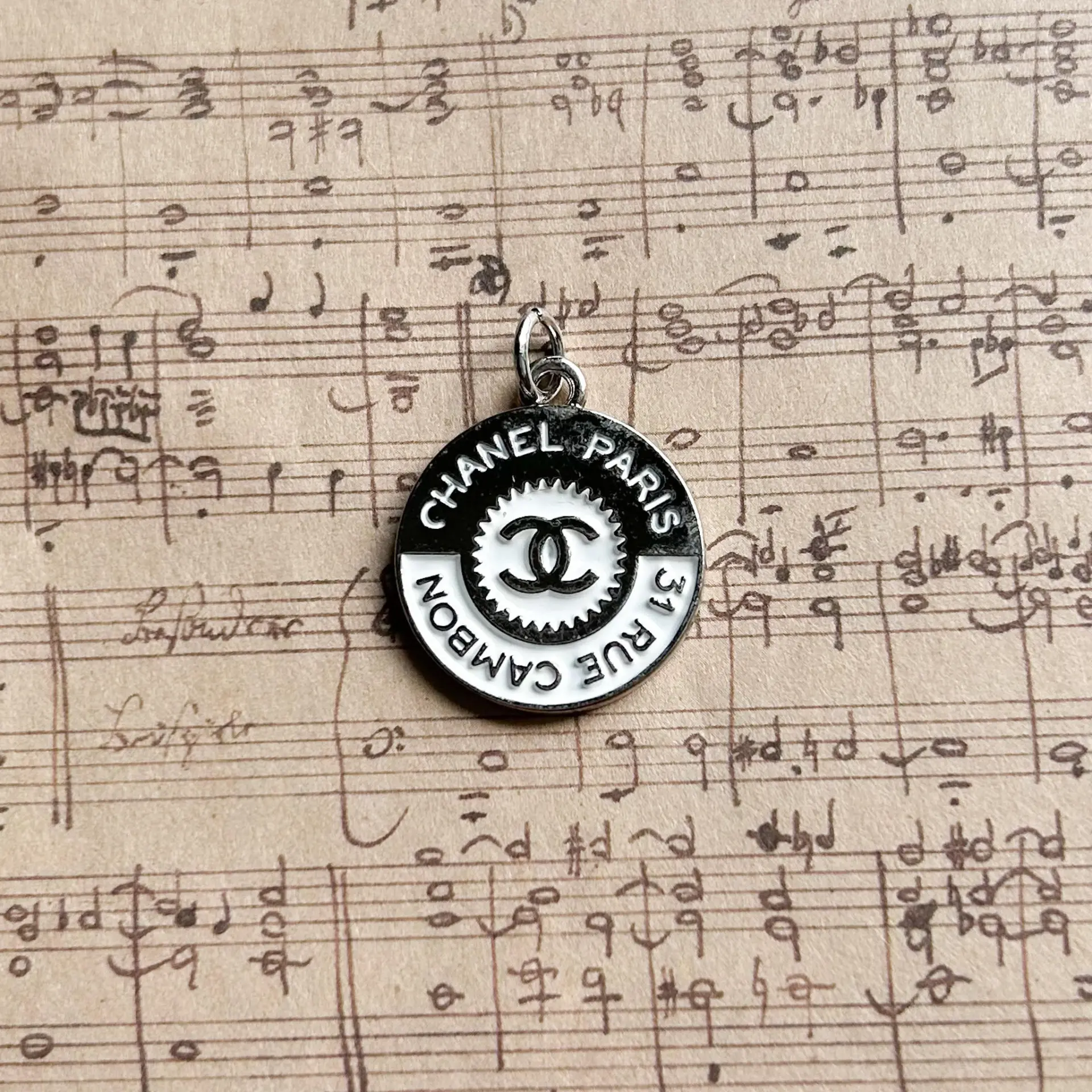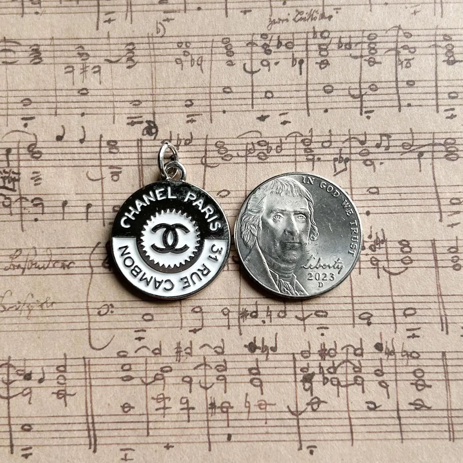 Zipper pull with white enamel accent. Lightweight silvertone metal alloy. Stamped on back. 20mm– Please see photos for scale.