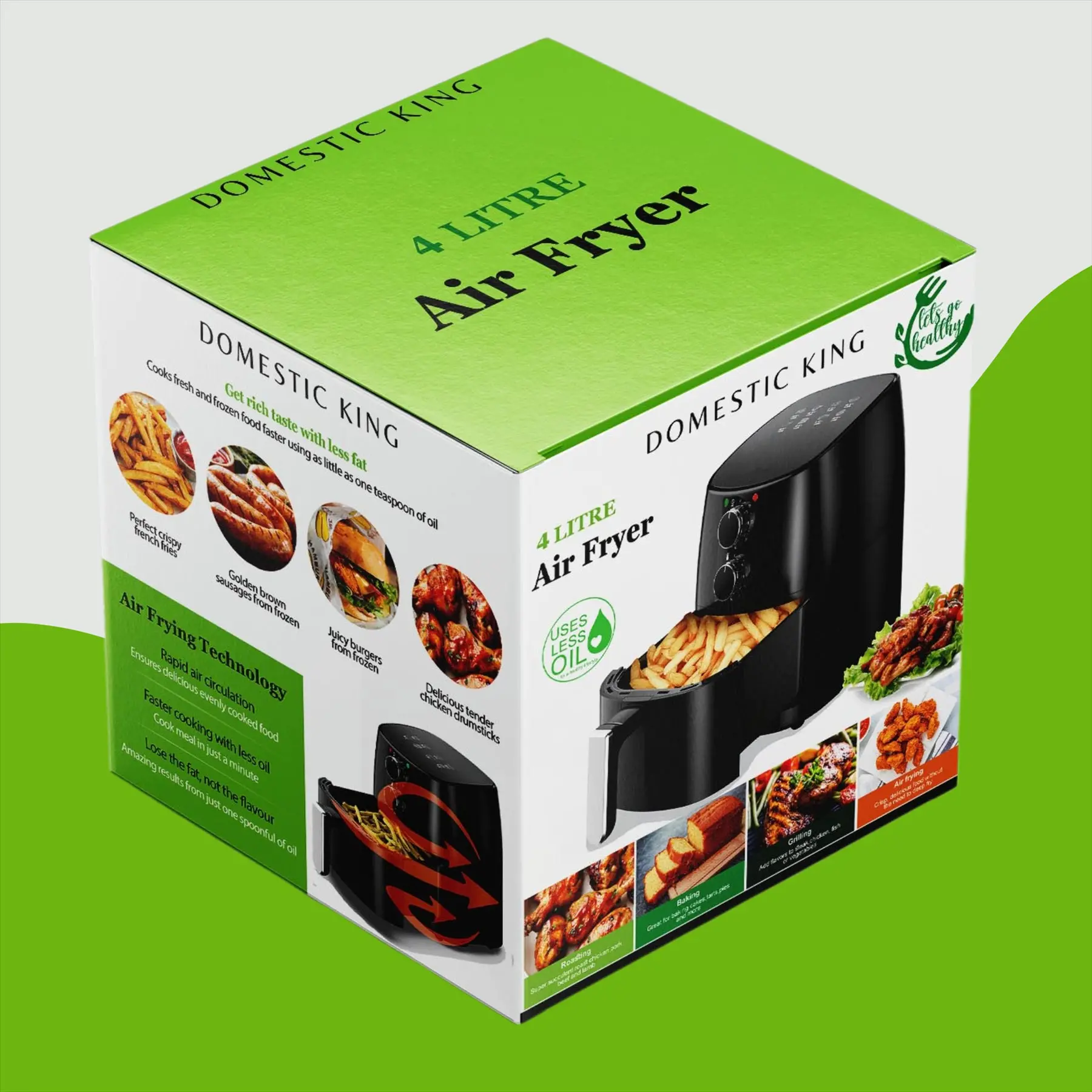 Healthy Eating: Prepare food with less oil or fat: With the Domestic King Air Fryer enjoy your crispy meals with less grease and fat.