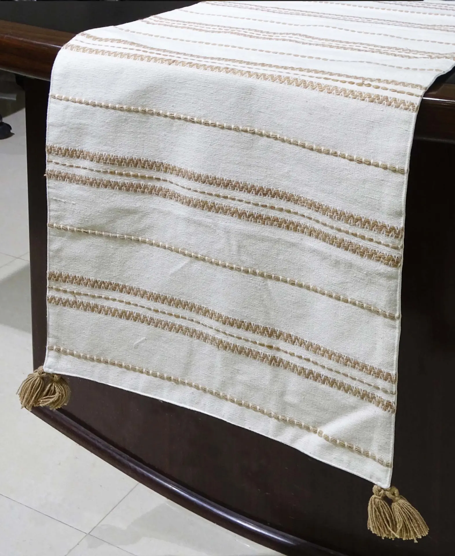 Add a touch of sophistication to your table decor with this beautiful and versatile Beige off white Embroidered Cotton Table Runner.