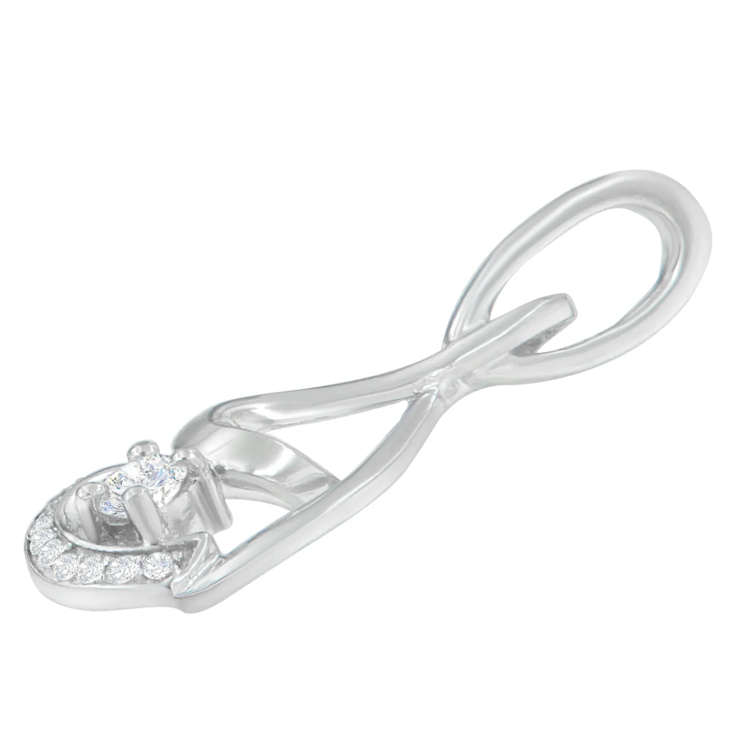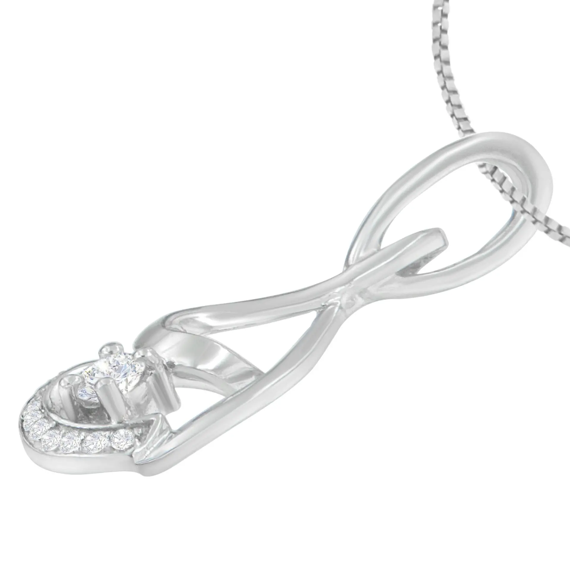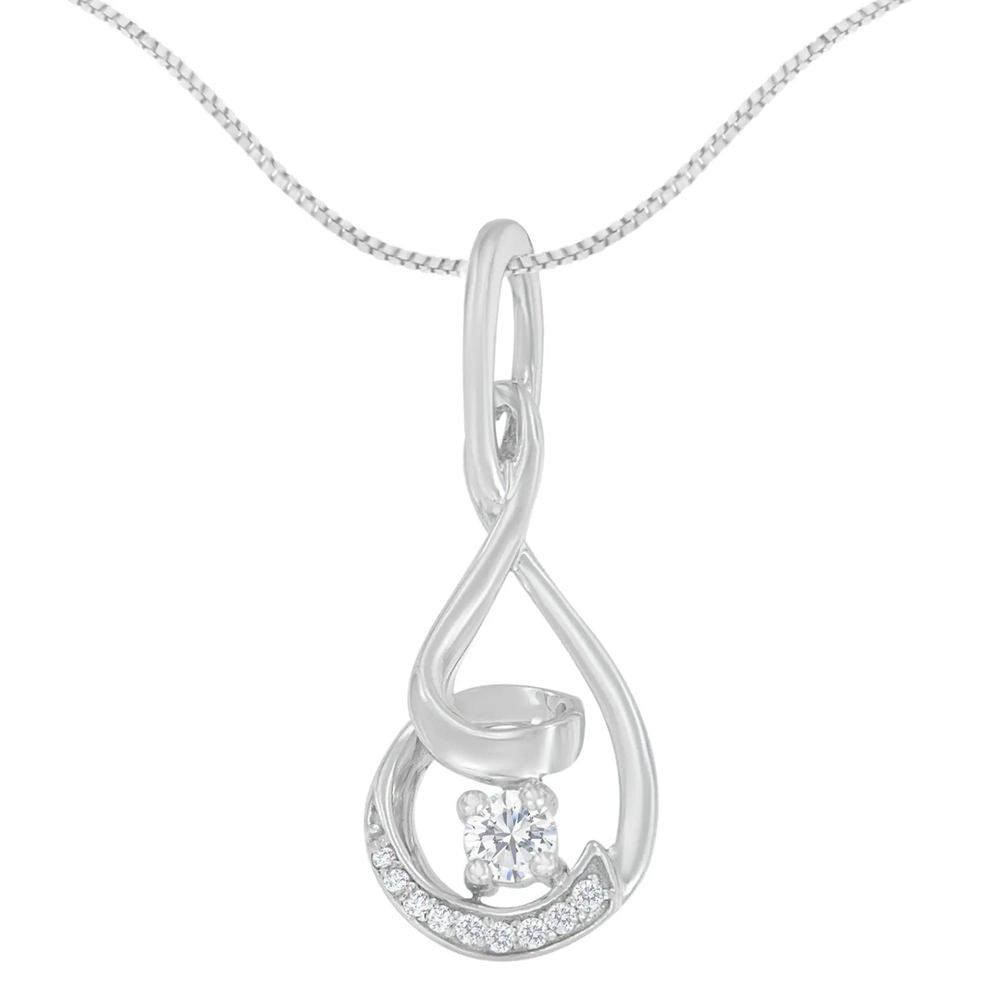Swirls of white gold are linked together, creating an eye-catching contrast for this unique pendant necklace. A sprinkling of diamonds line the outer layer, while a single stone adorns the center, lending style and elegance.