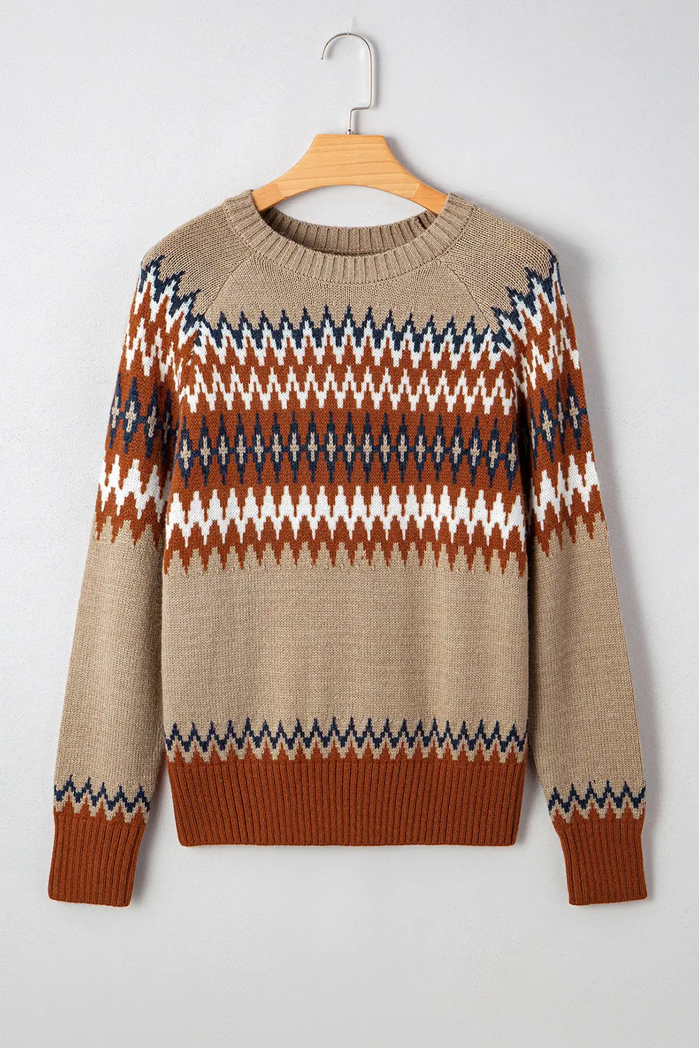Get wrapped in western charm with this fun Aztec print sweater. The colorblock pops with modern flair, making every look lively. Its classic crew neck is perfect for layering when the temperature drops. Plus, the super soft knit keeps you cozy from morning to night.