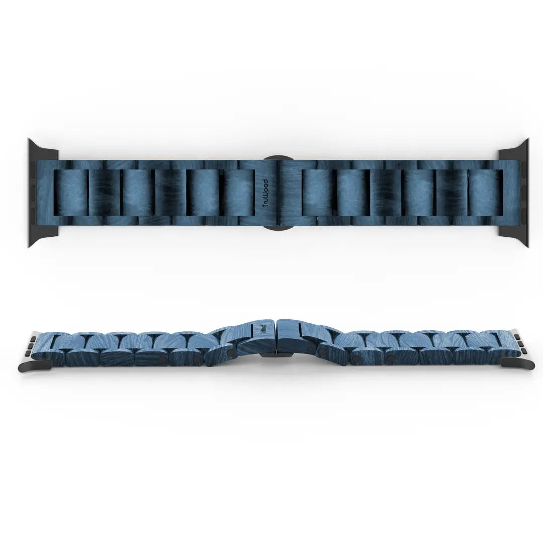 Every one of our Everyday Apple Watch Bands are unique. Made with 100% natural maple wood with blue dye, designed to give you the earthy look often lost with modern tech wearables. Compatible with all series of Apple Watches (case sizes 38mm, 40mm, 41mm, 42mm, 44mm, 45mm and 49mm).