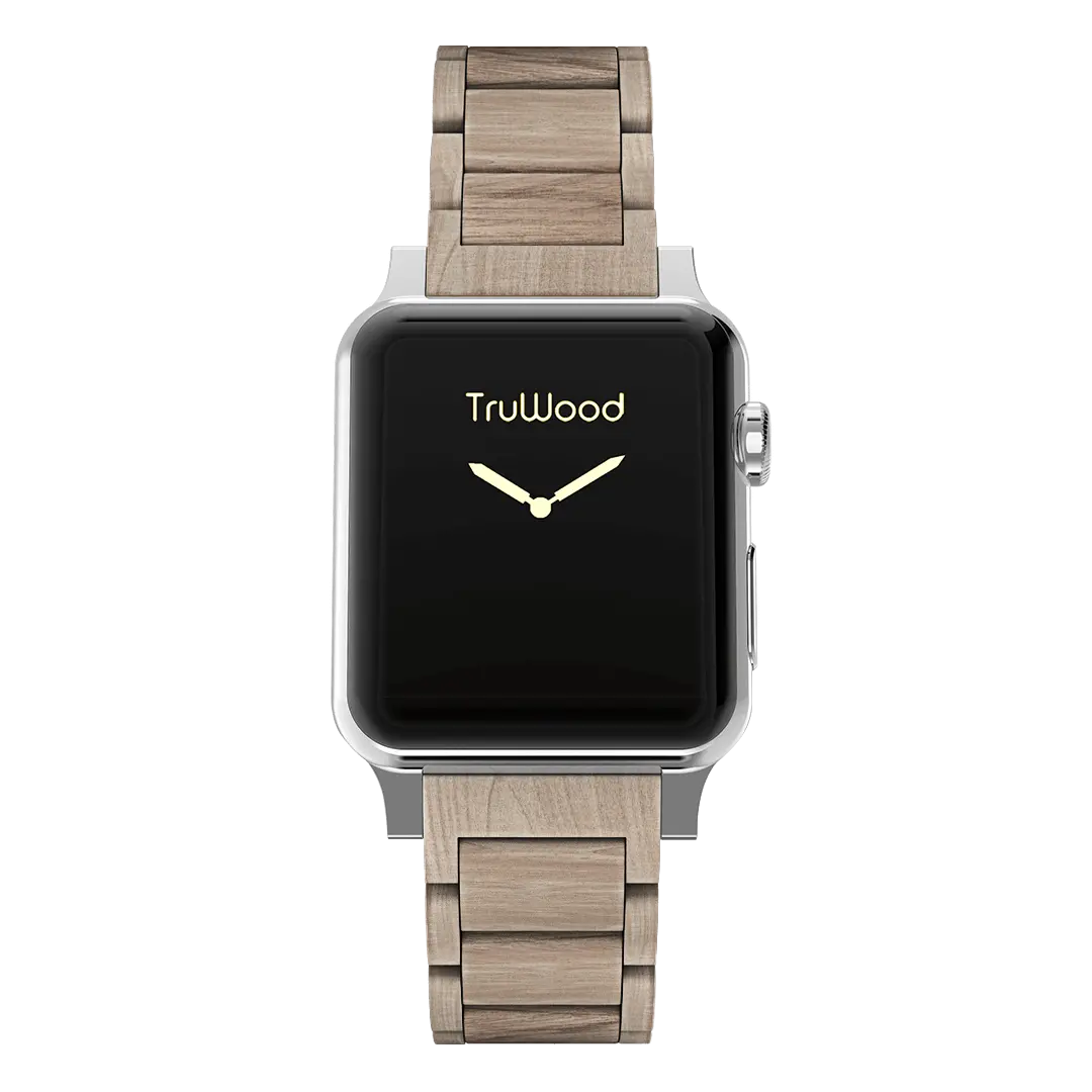 Every one of our Everyday Apple Watch Bands are unique. Made with 100% maple wood with grey dye, designed to give you the earthy look often lost with modern tech wearables. Compatible with all series of Apple Watches (case sizes 38mm, 40mm, 41mm, 42mm, 44mm, 45mm and 49mm).