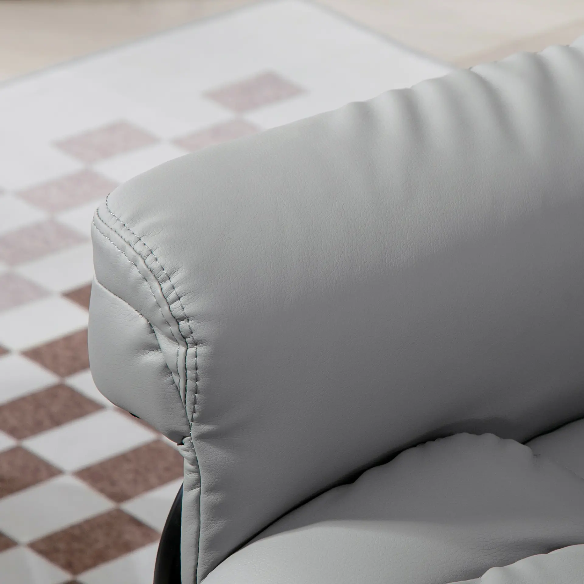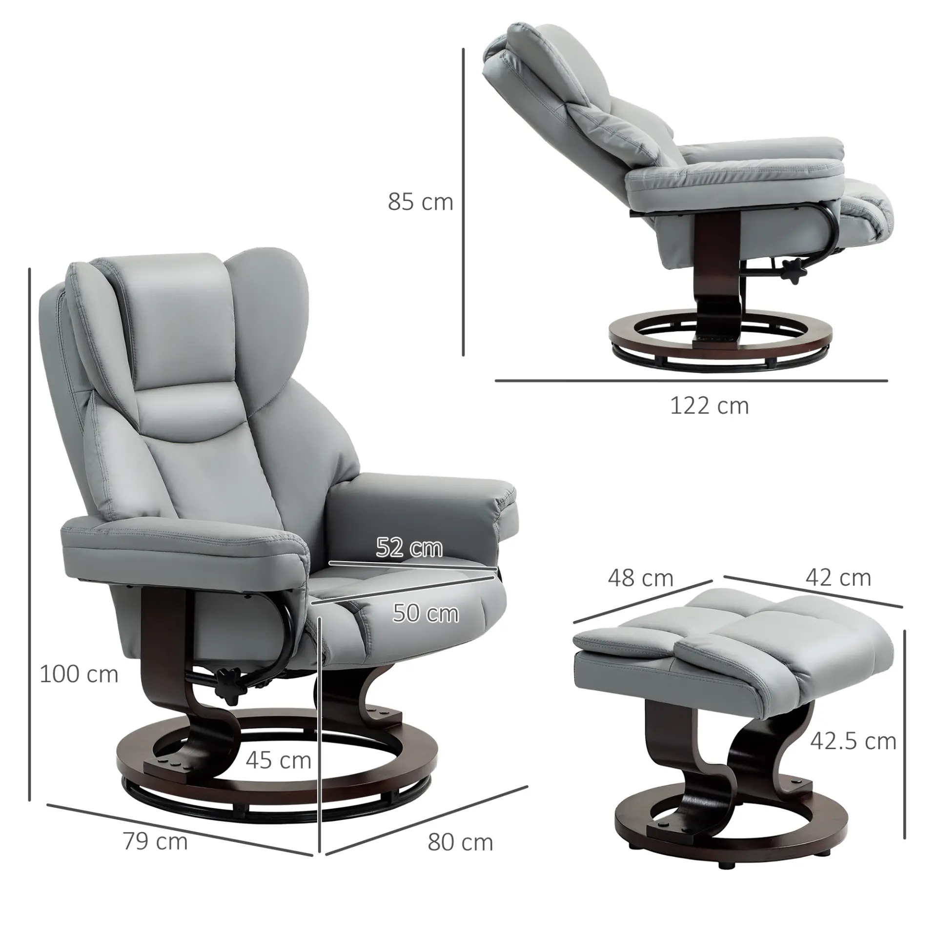 Faux Leather Recliner Chair and Footstool, Swivel Upholstered Armchair with Adjustable Backrest, Wood Base in Light Grey by HOMCOM
