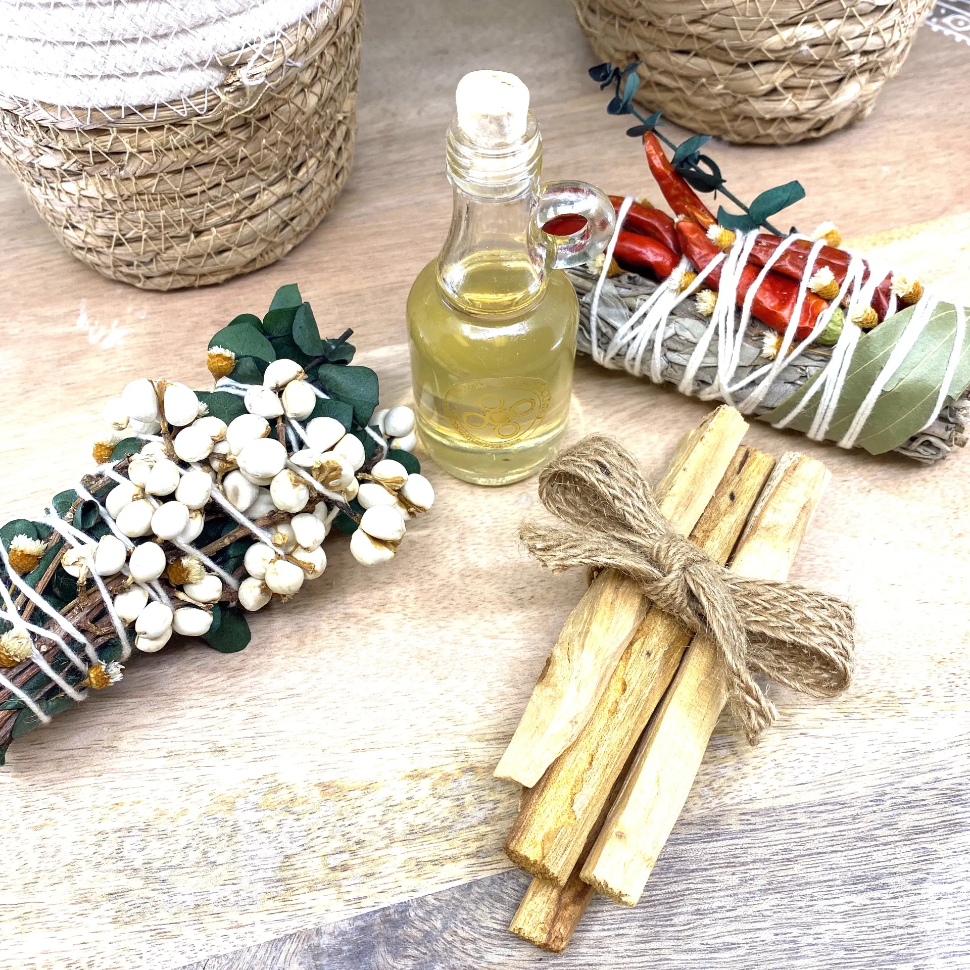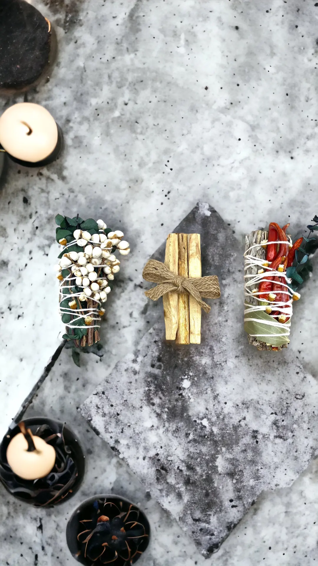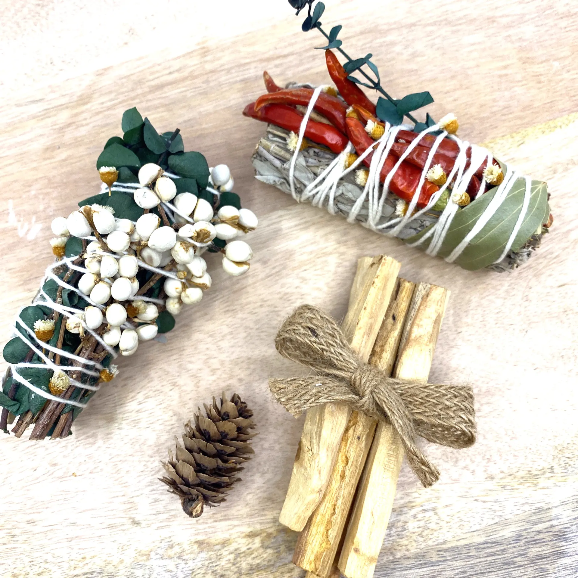 Each kit is handmade and dried flower bundles and palo santo sticks may vary slightly.