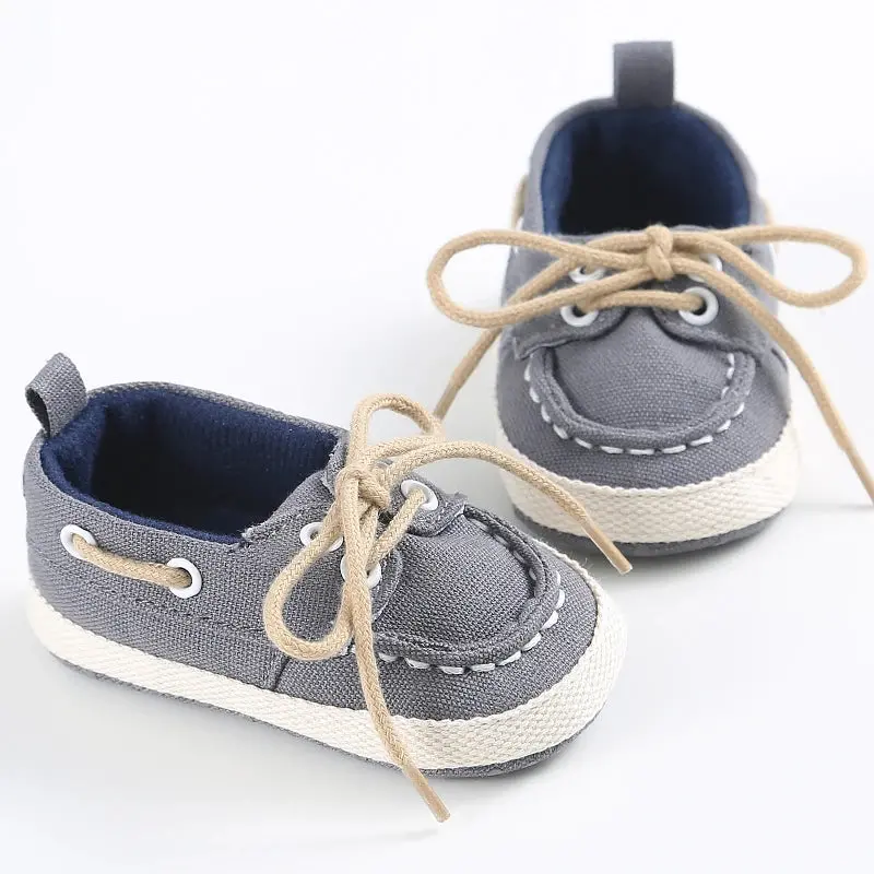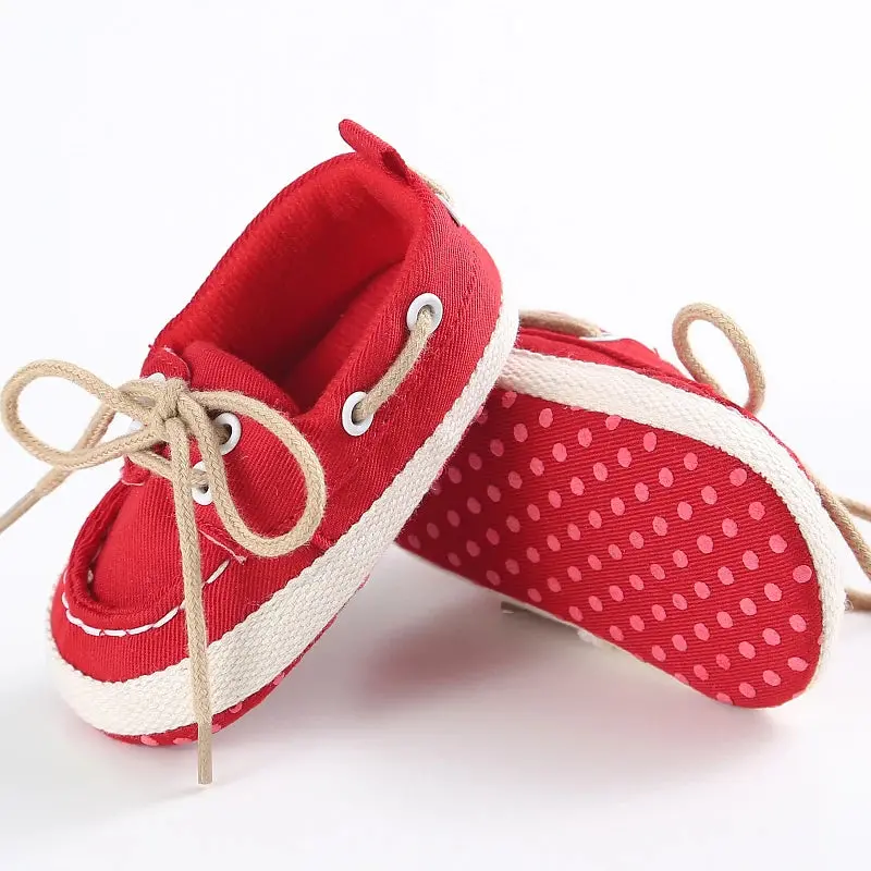 Accompany your baby in his first steps with these very comfortable cotton canvas shoes! Soft and comfortable thanks to the cotton sole, they close with laces just like grown-up shoes!
