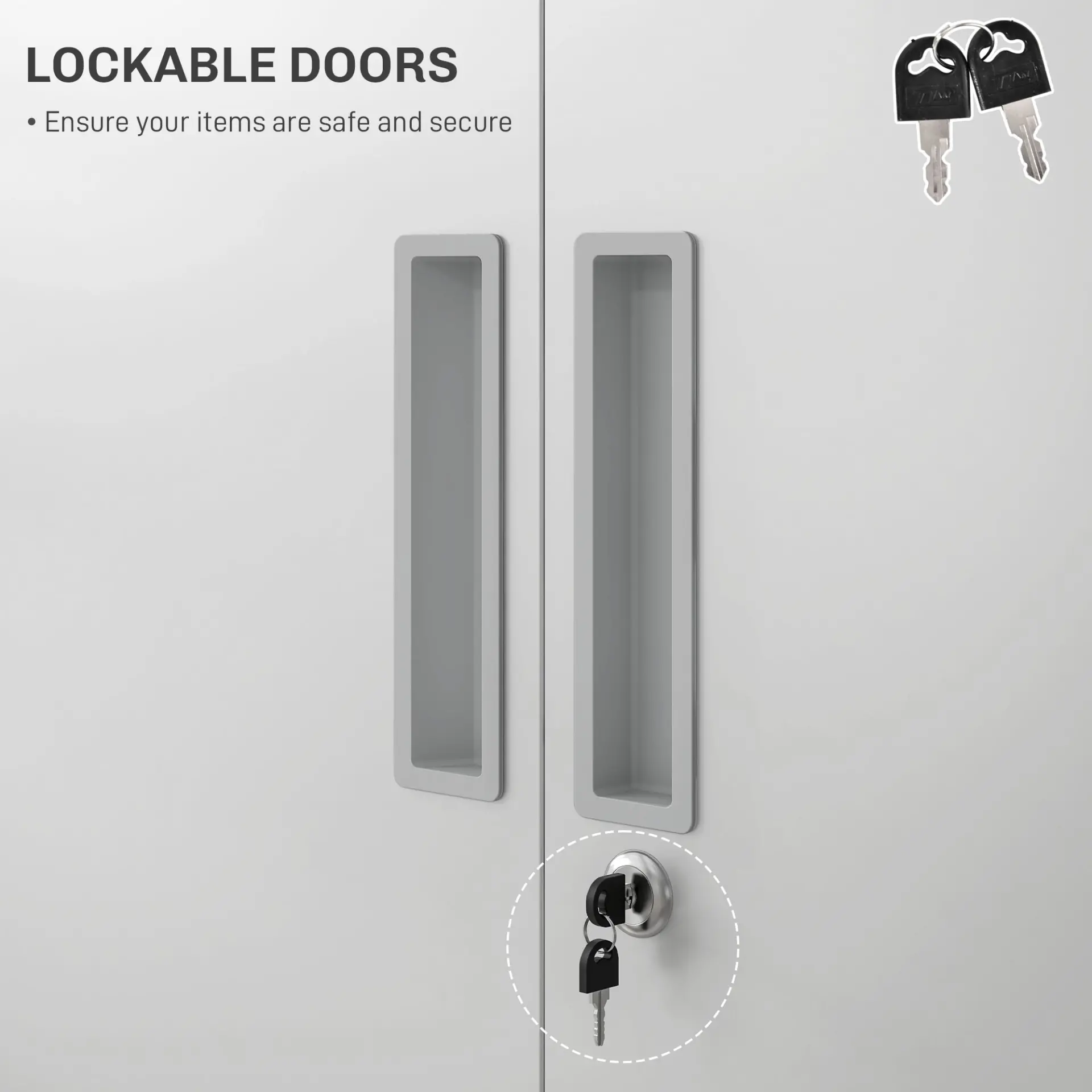 • Adjustable shelves: Each moves to different levels – easy to fit in smaller and larger items inside this metal storage cupboard.