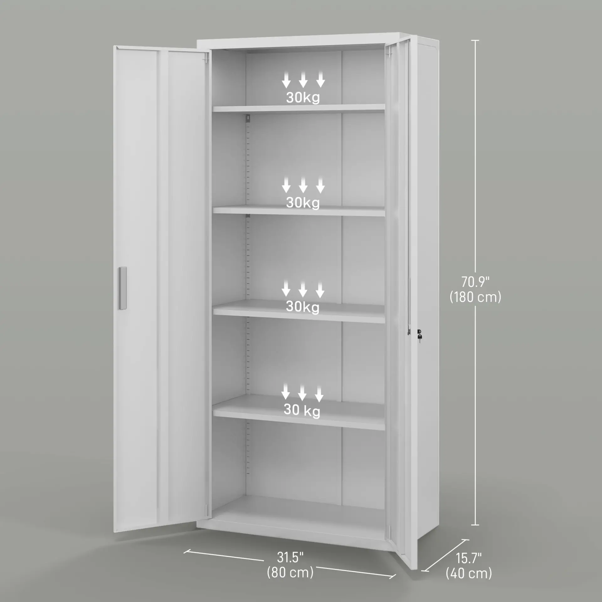Five Shelf Lockable Steel Office Cabinet – White by HOMCOM