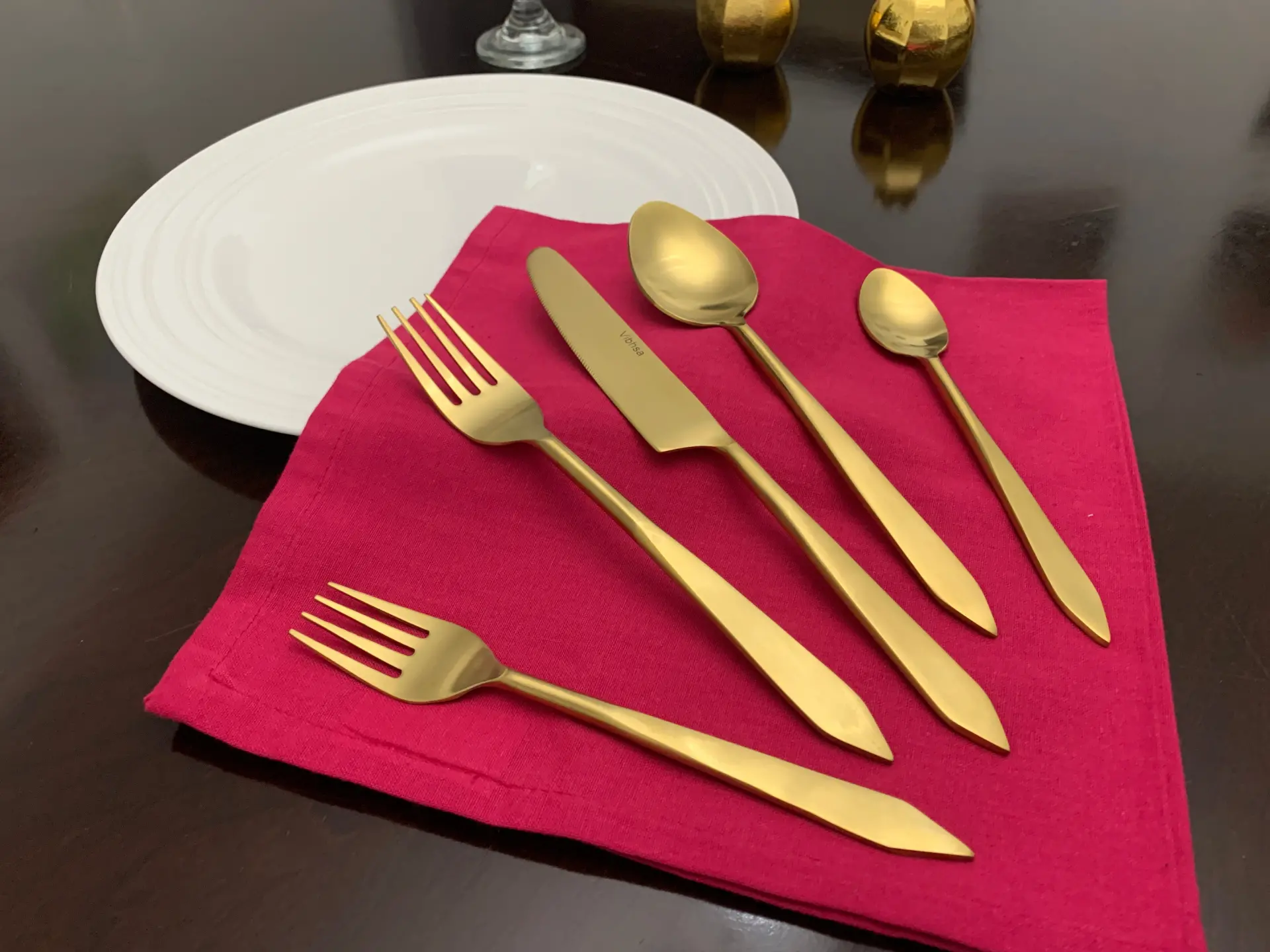Give your dinner table a touch of elegance with this 20-piece flatware set. Crafted with traditional sand-casting methods and 100% stainless steel, each piece is finished with a beautiful, rustic Golden hue. The set of 4 includes dinner fork, dinner knife, tablespoon, teaspoon, and salad fork and comes in a gift box. Dishwasher safe for easy cleanup, though handwashing is recommended. Perfect for special occasions or everyday use.